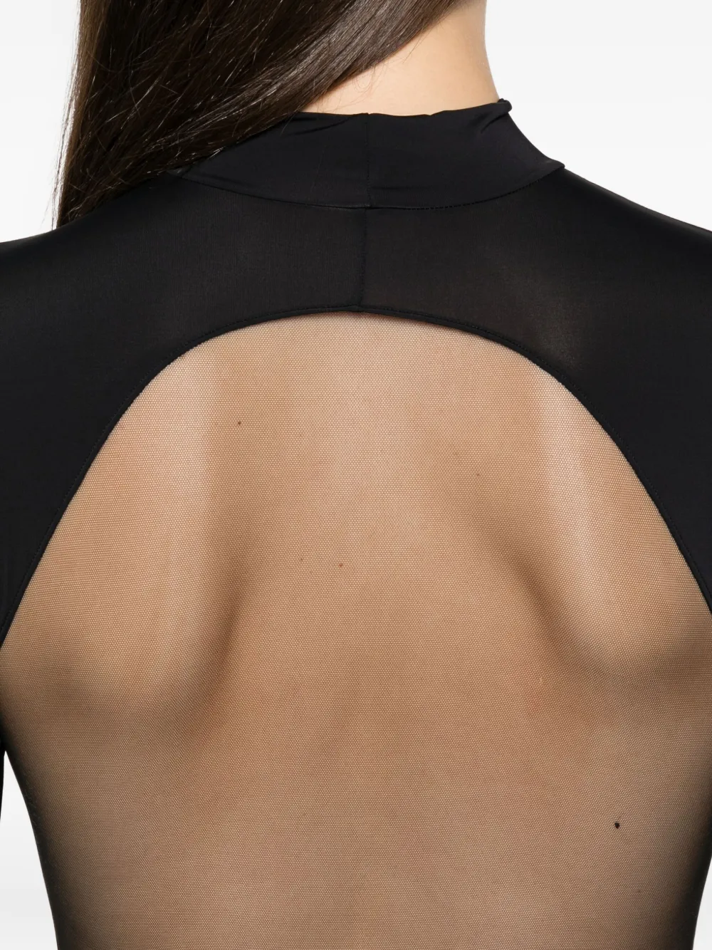 Черный с высоким воротом и сетчатой вставкой, длинные рукава