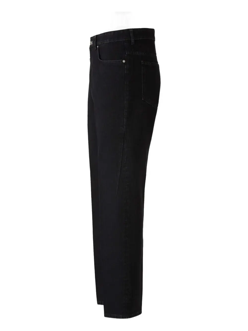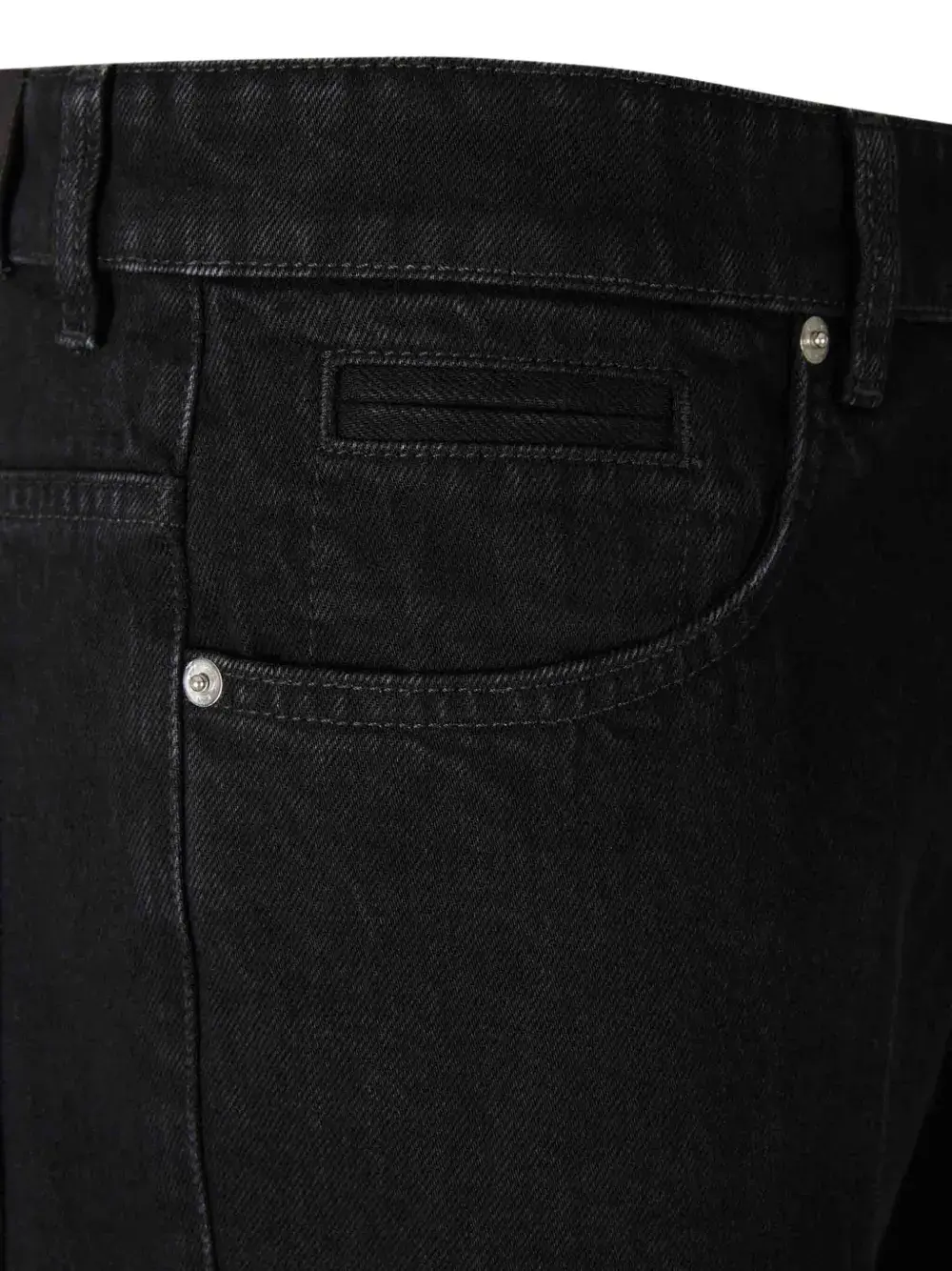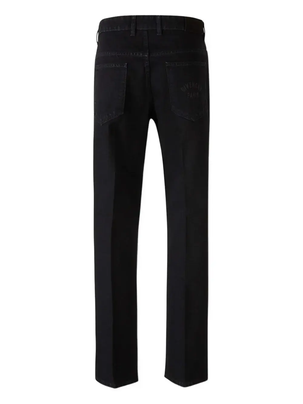 Черная тональная строчка, пять карманов, вышитый логотип сзади, ширинка на пуговицах