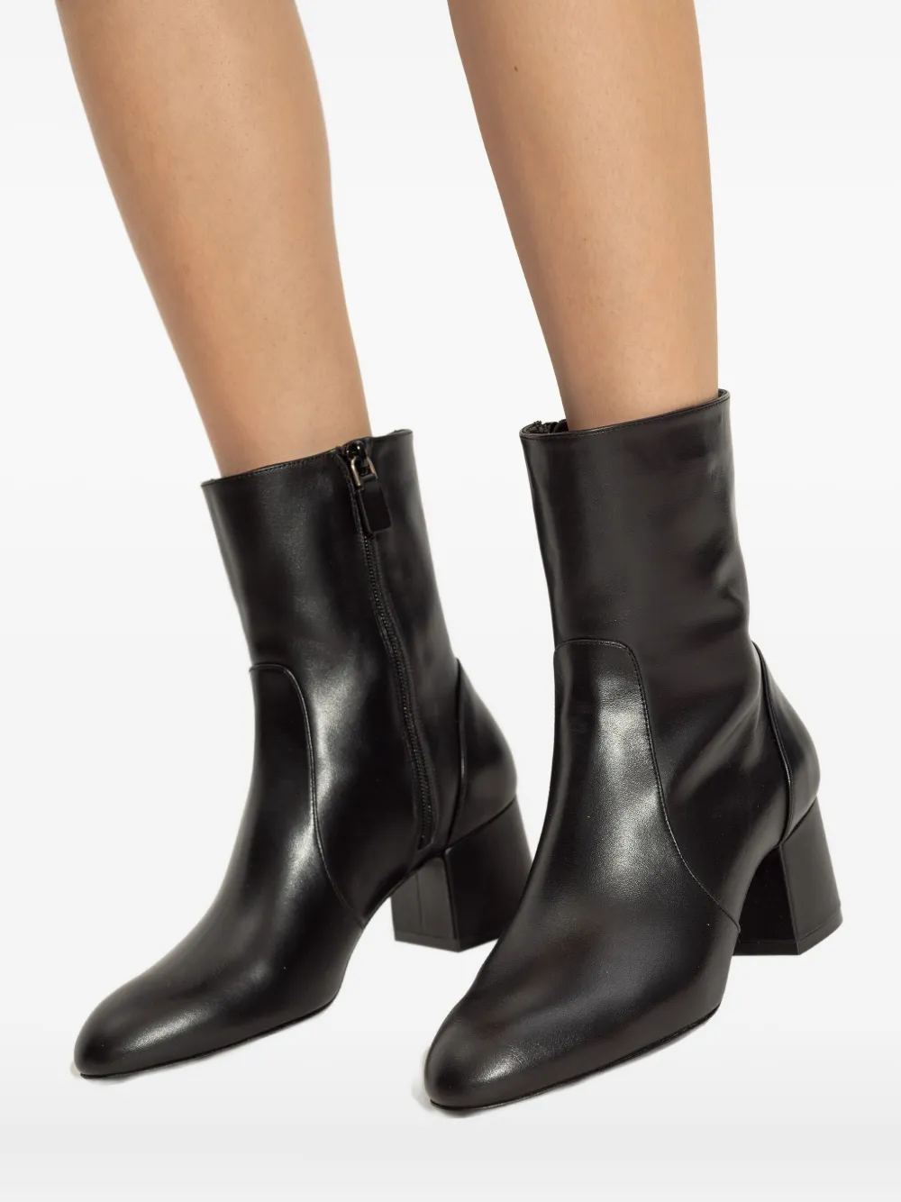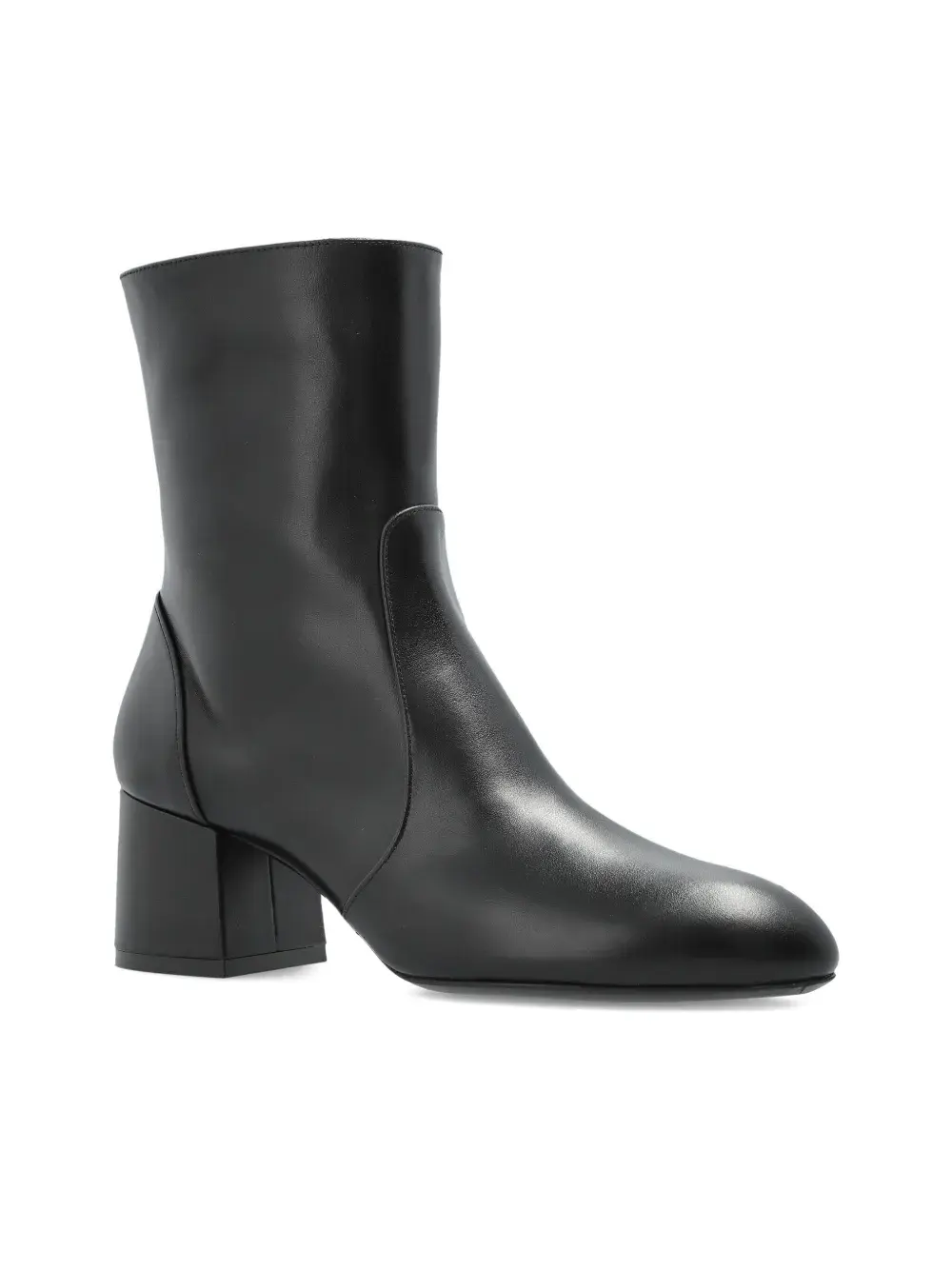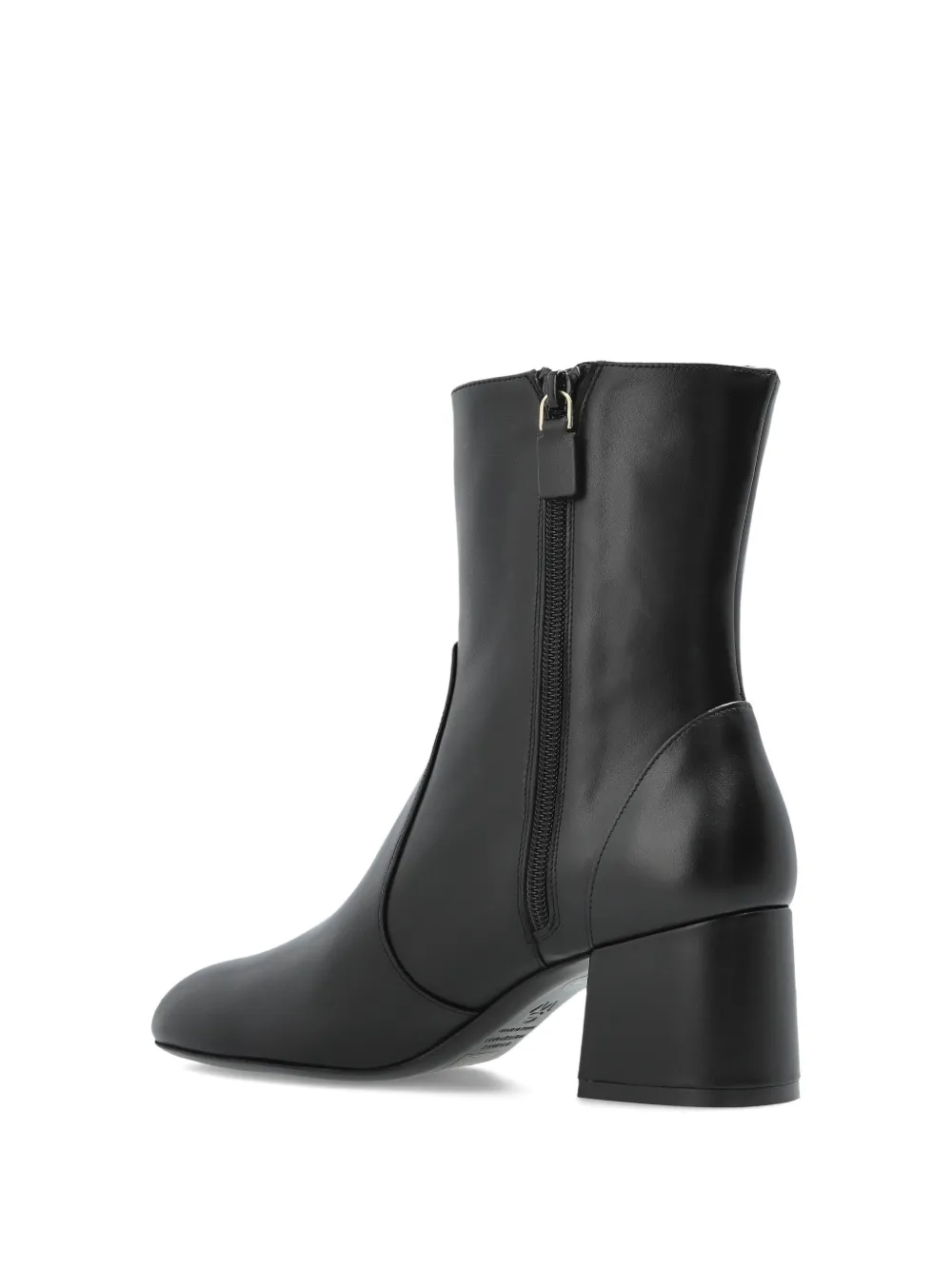 Черная кожаная застежка-молния сбоку, квадратный каблук, миндалевидный носок, фирменная стелька