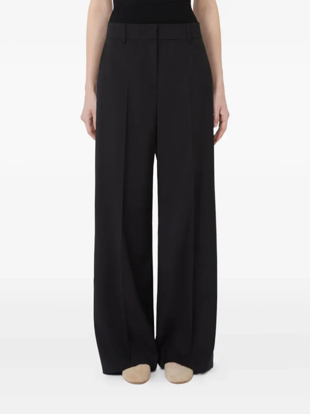 Черные заутюженные складки, боковые карманы, высокий пояс