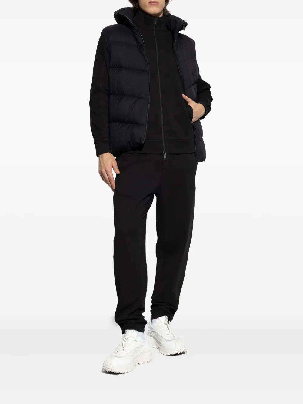 Черный стеганый дизайн, капюшон, застежка-молния спереди, без рукавов, прямой подол