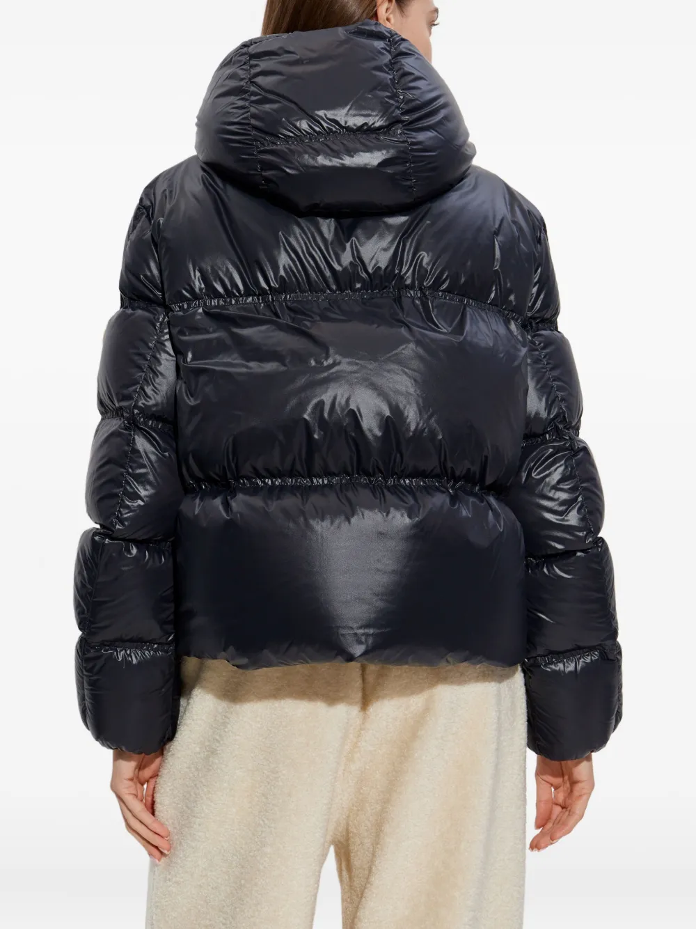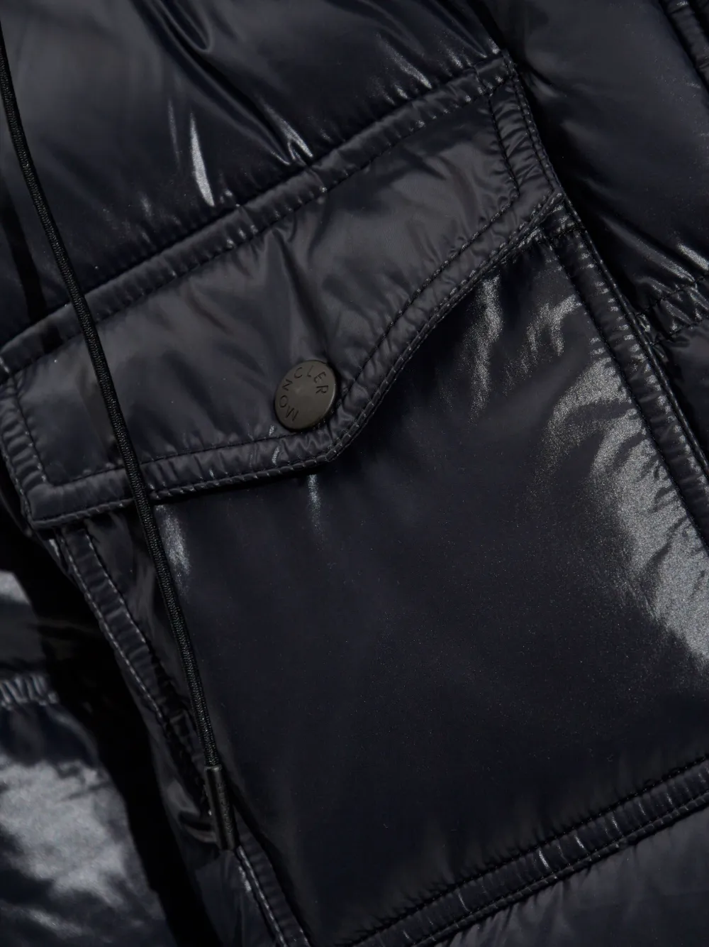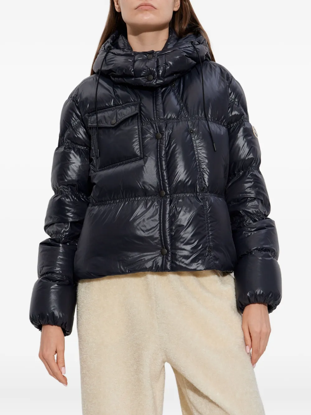 Черный воротник-стойка, карман с клапаном, кулиска, стеганый капюшон