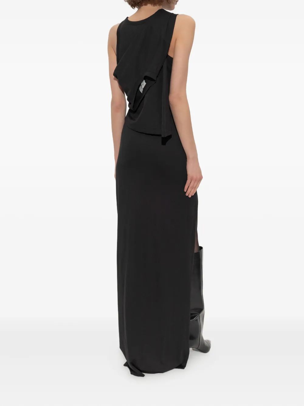 Черное платье с разрезами по бокам и узлом, без рукавов, макси-длина