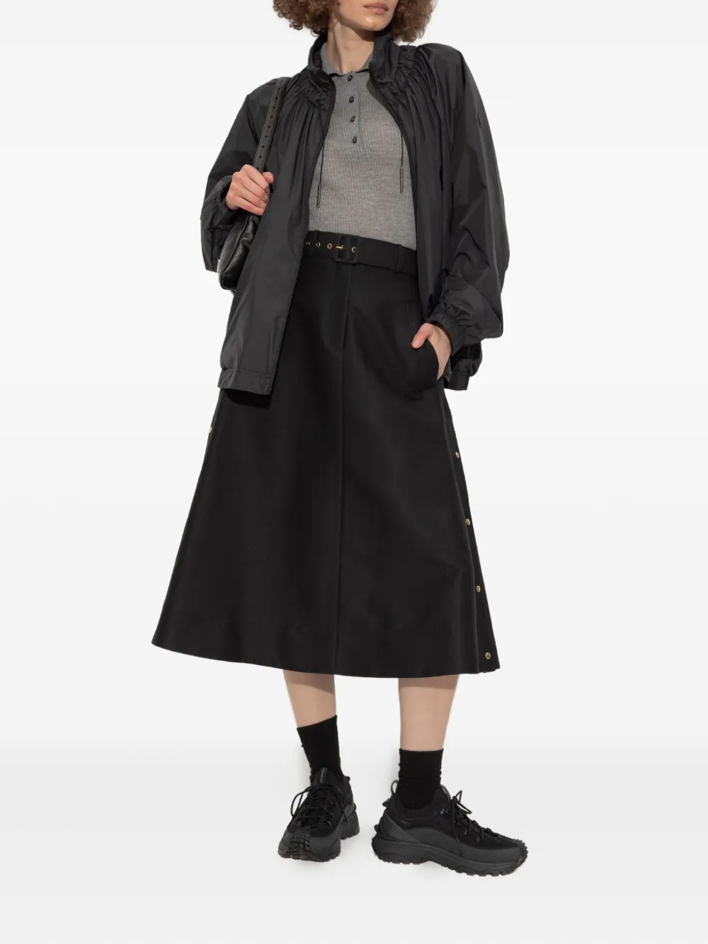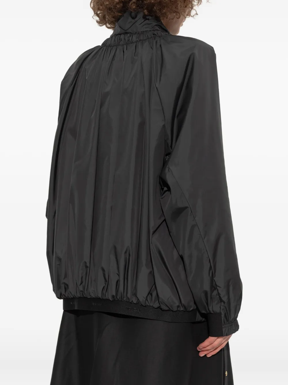 Черный присборенный вырез, застежка-молния, длинные рукава, эластичные манжеты, нашивка с логотипом
