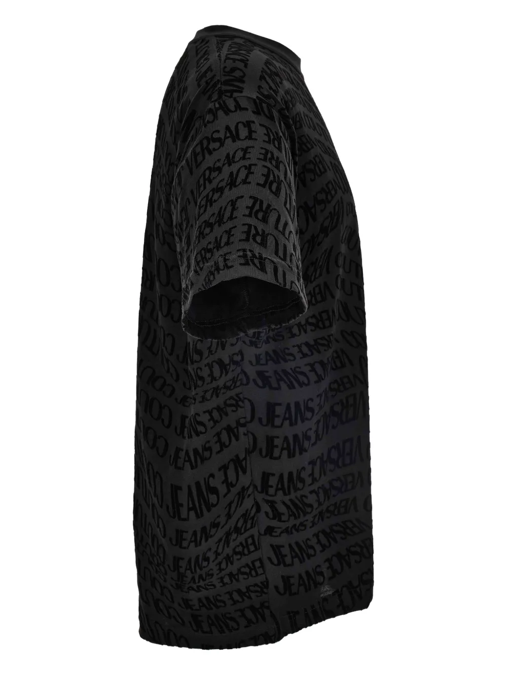 Черный с короткими рукавами, принтом логотипа по всей поверхности, круглым вырезом, бархатной текстурой