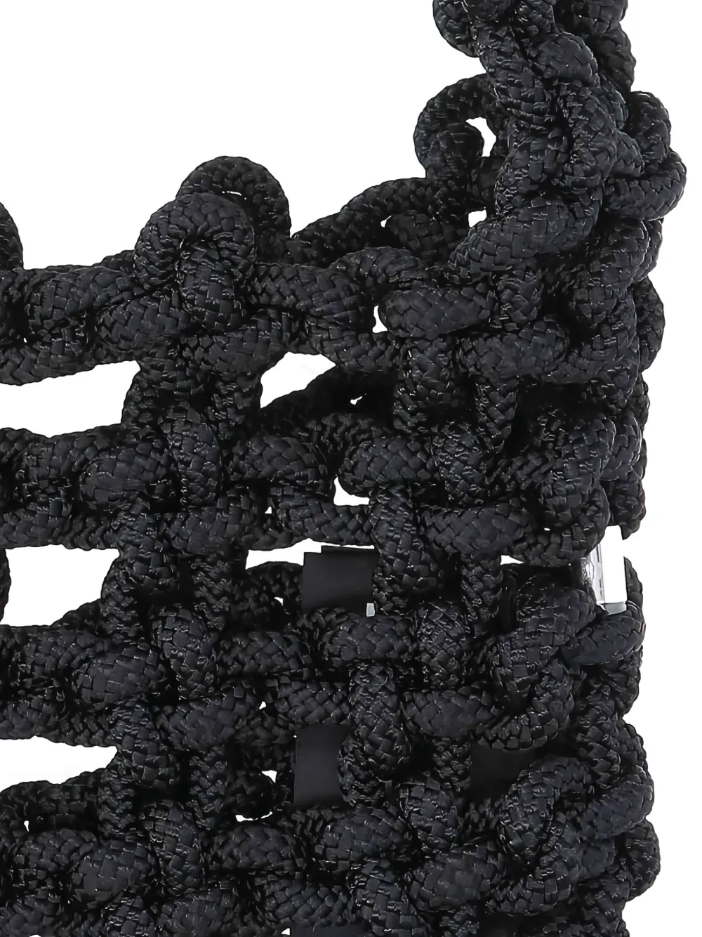 Черная узловатая конструкция с верхней ручкой, открытое плетение, прямоугольная форма