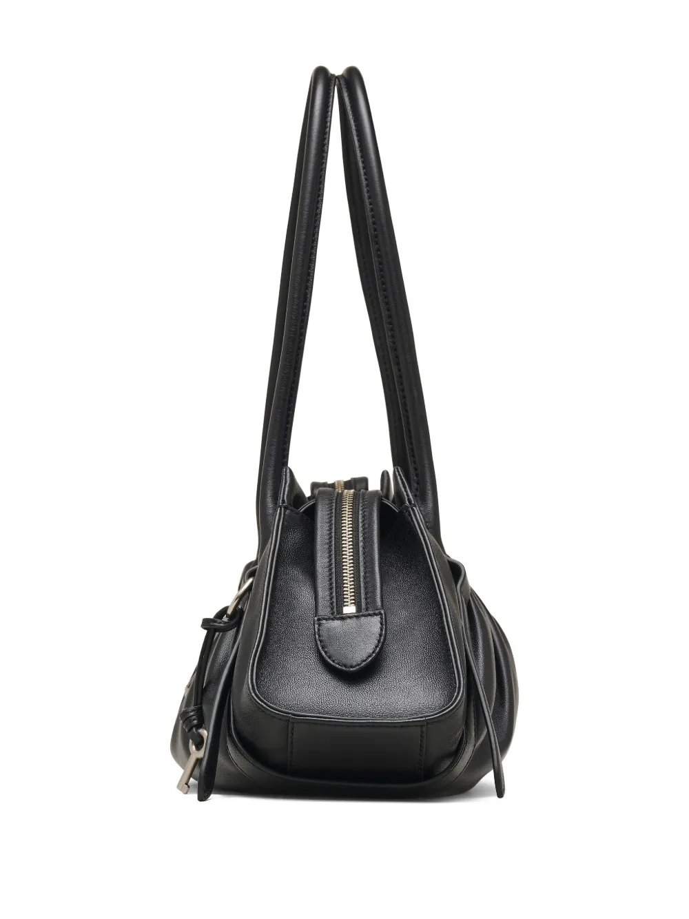 Черная кожаная конструкция, застежка-молния, верхние ручки, деталь замка, брелок для ключей