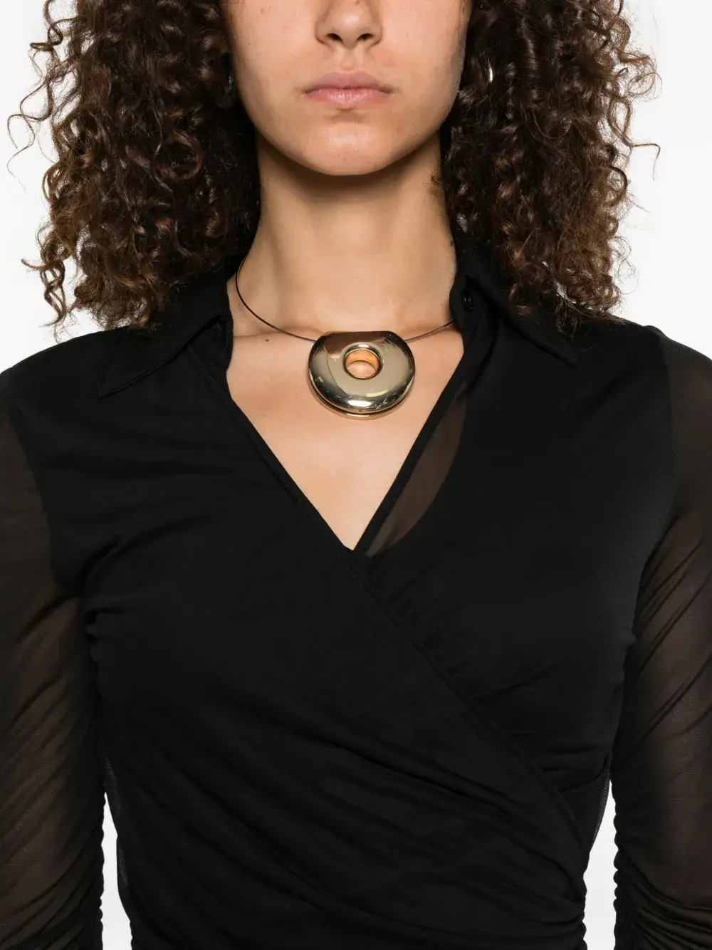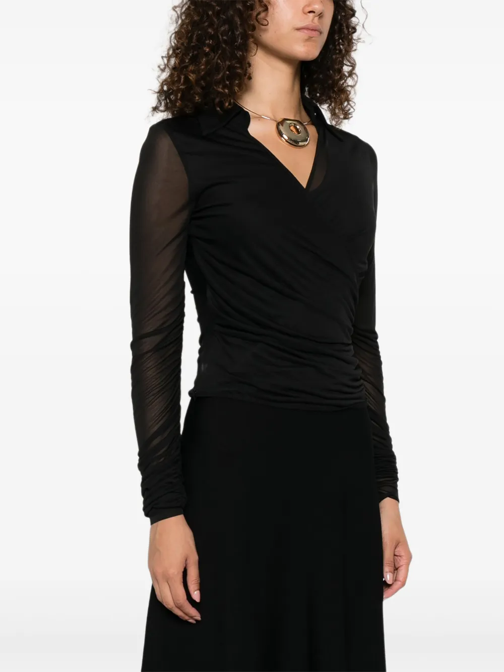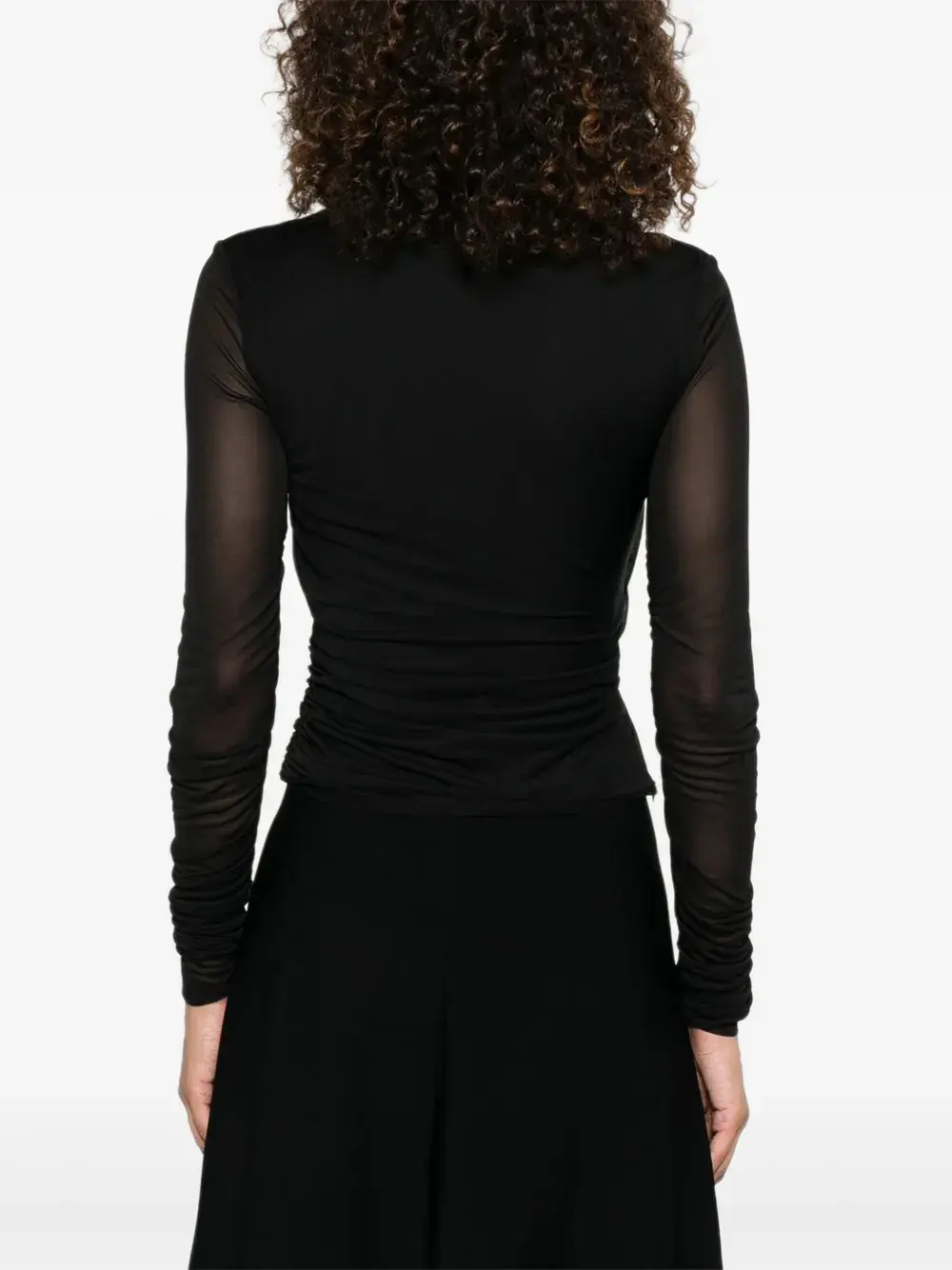 Черный вырез-замочная скважина, длинные сетчатые рукава, драпированные детали