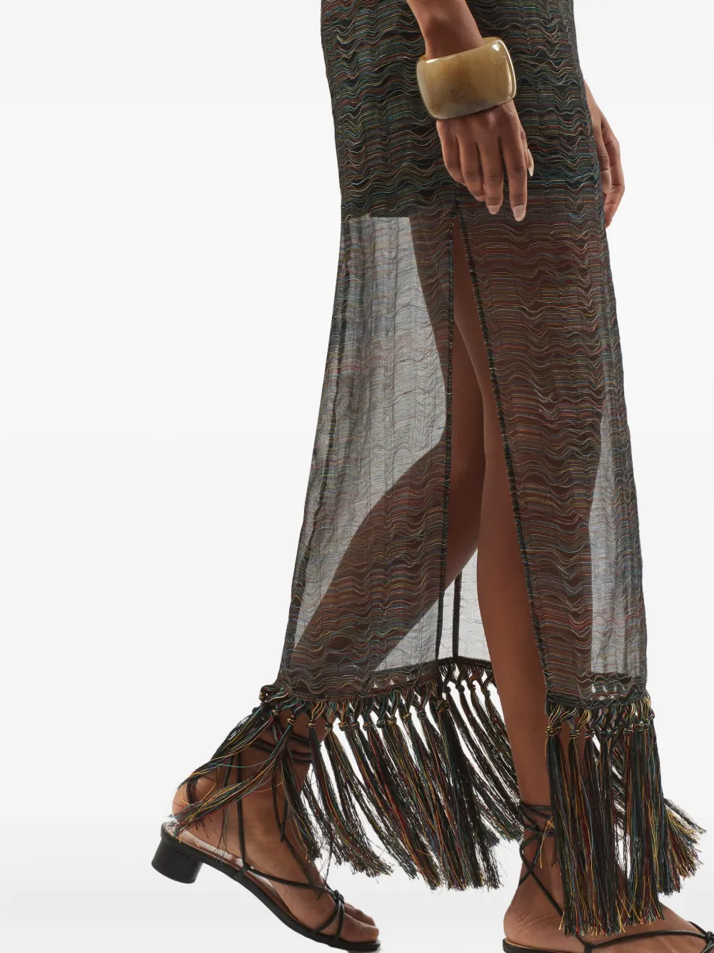 Черный топ без рукавов с бахромой и боковыми разрезами