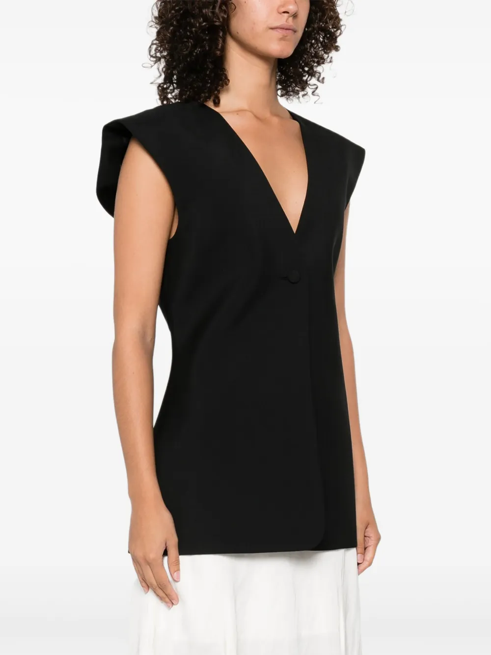 Черная безрукавка с V-образным вырезом, застежка на одну пуговицу