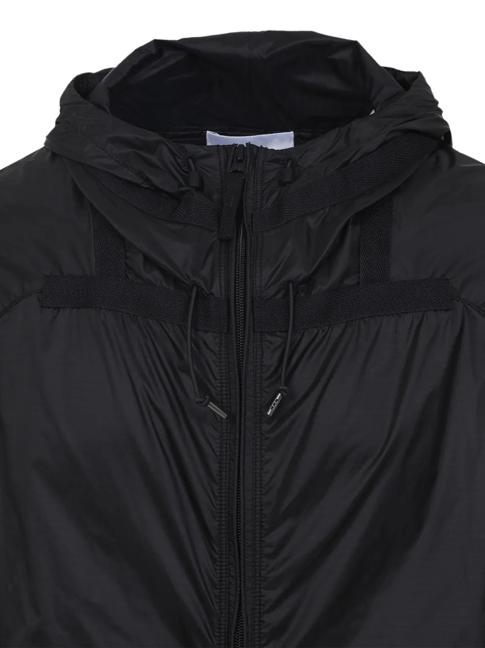 Черная застежка-молния, затягивающийся шнурок, капюшон, нашивка с логотипом, эластичные манжеты, прорезные карманы