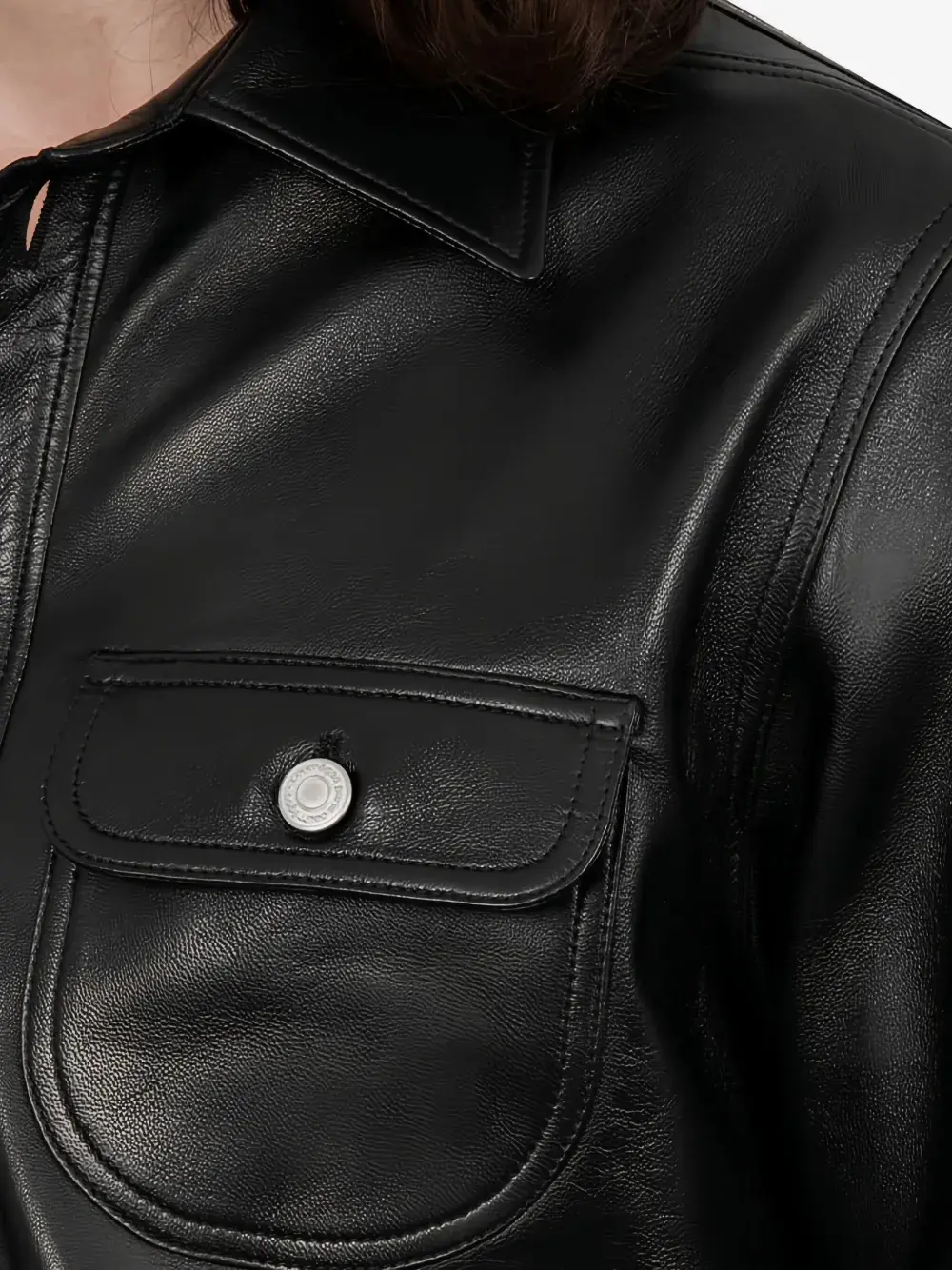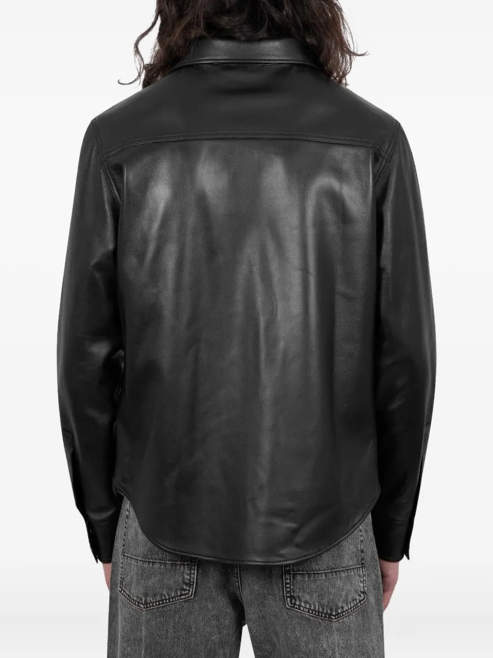 Черная овчина, застежка на пуговицы, нагрудные карманы с клапанами, логотип, длинные рукава