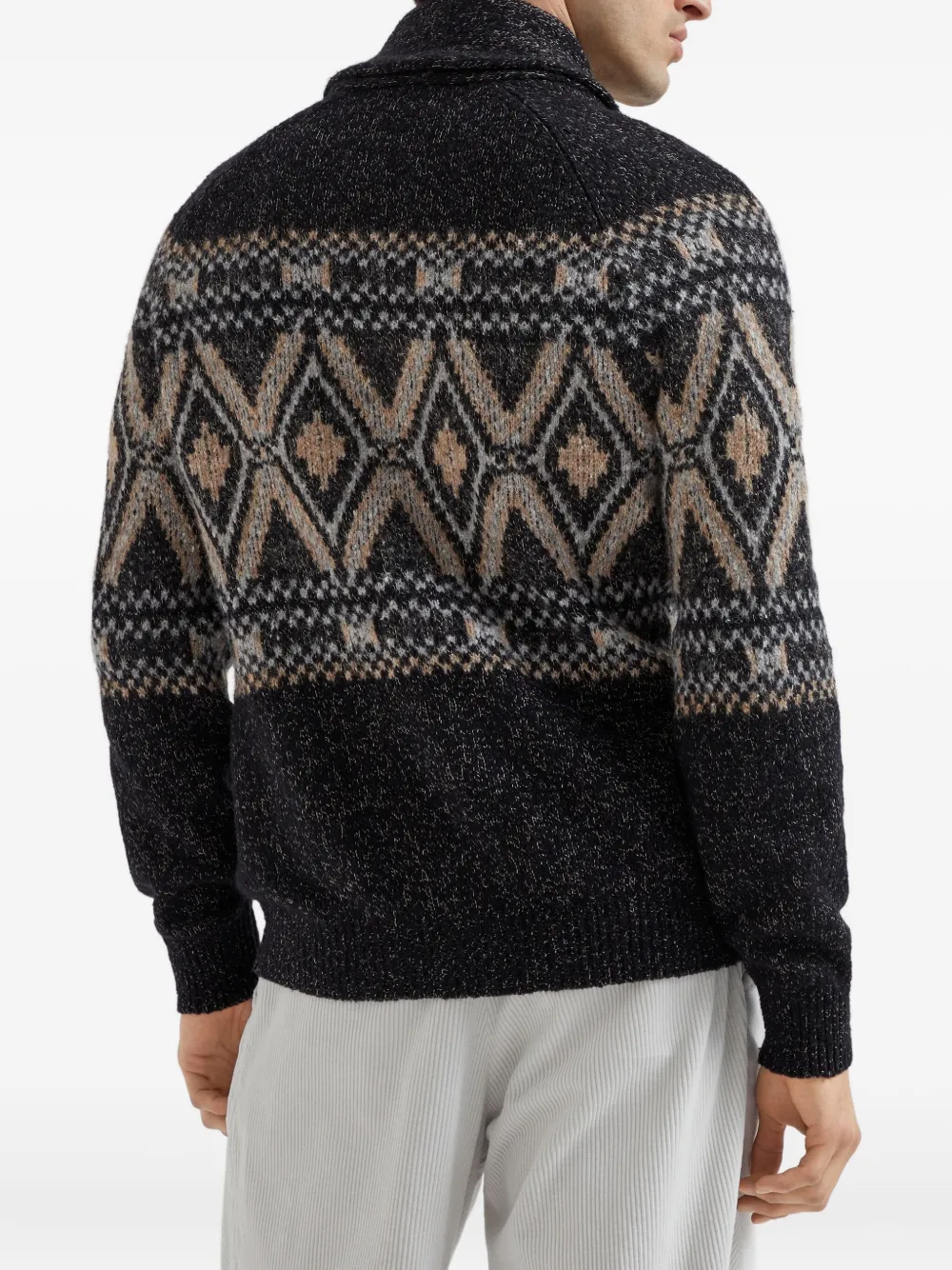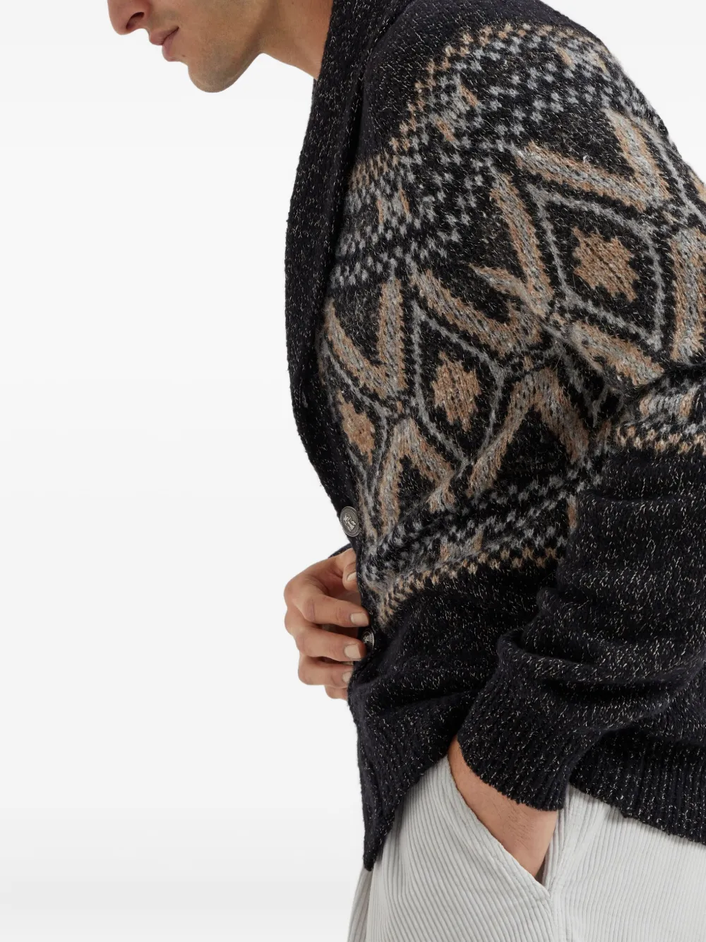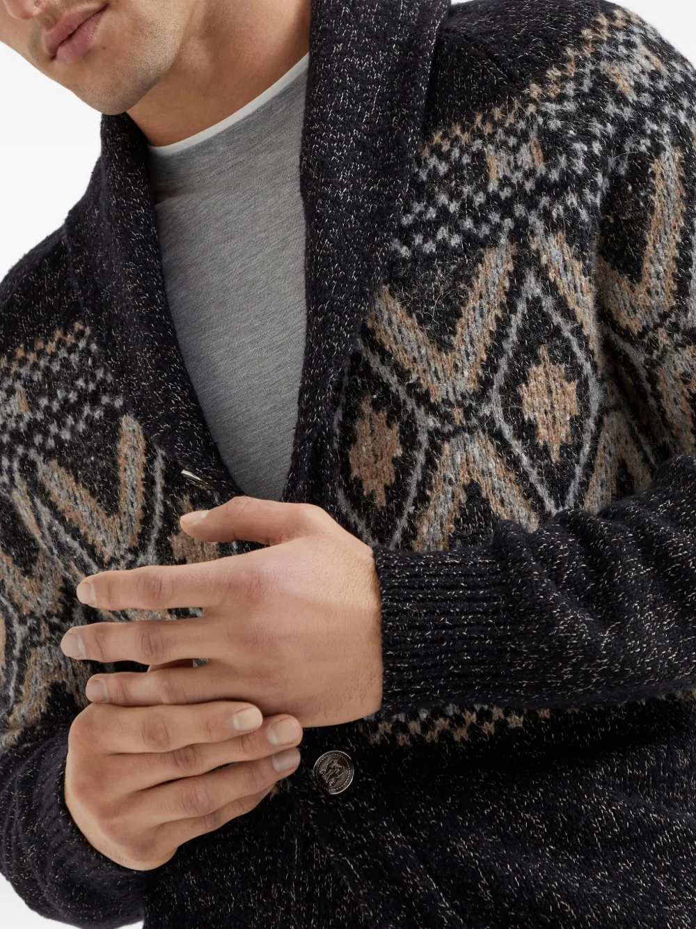 Черный шалевый воротник с геометрическим узором, застежка на пуговицы