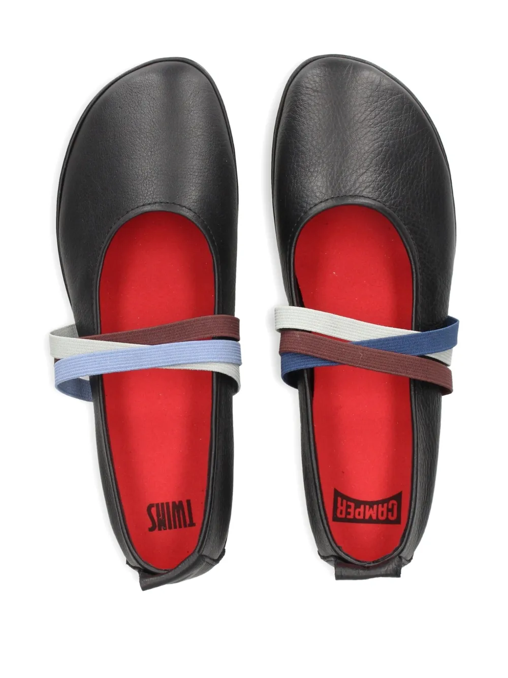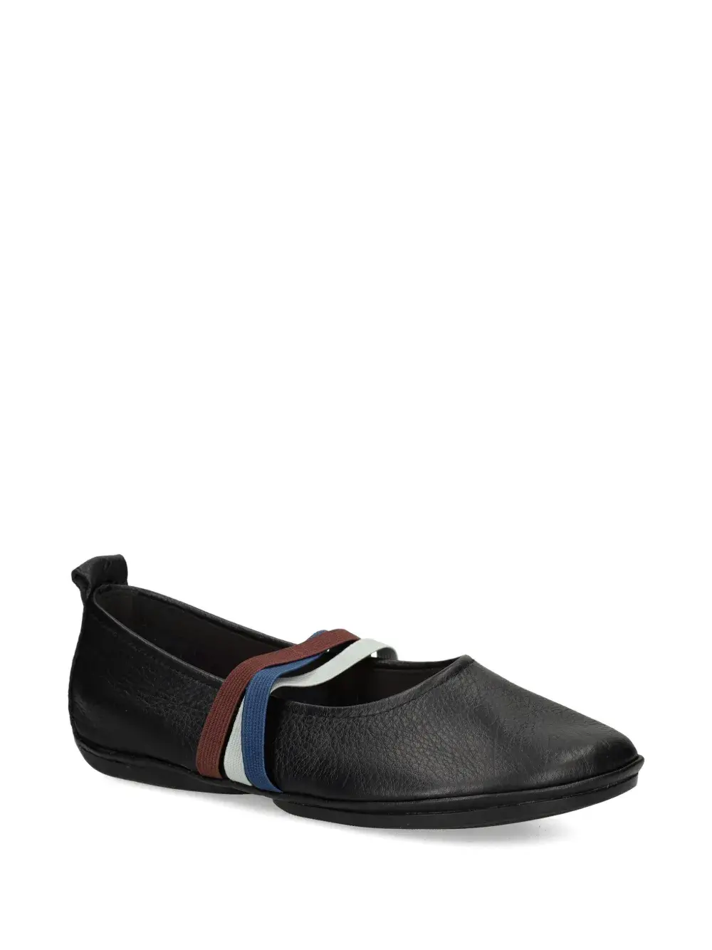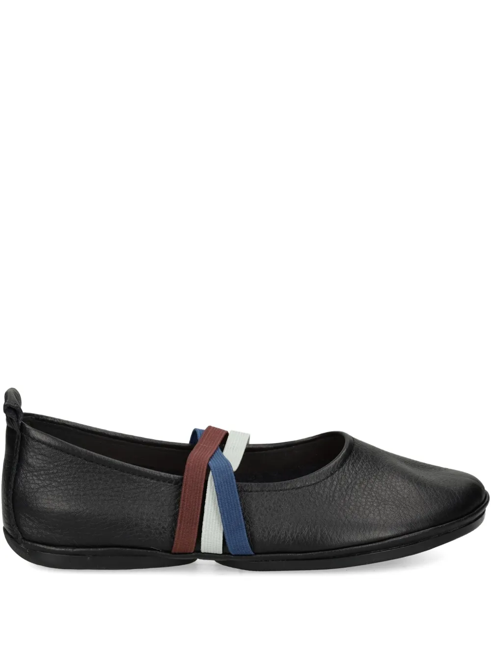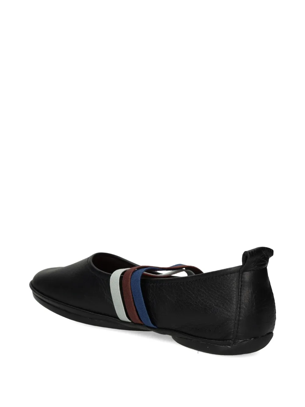 Черные кожаные контрастные ремешки, круглый носок, плоская подошва, модель slip-on