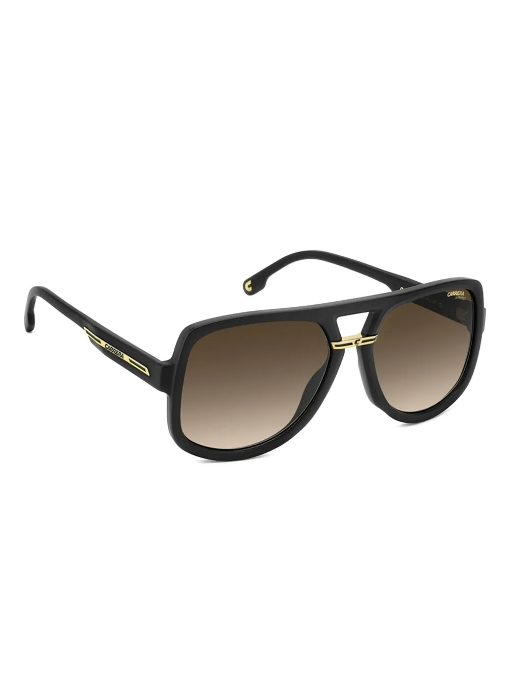 Черная матовая отделка, золотистые детали, коричневые градиентные линзы, линзы с защитой от ультрафиолета. Очки поставляются с защитным футляром.