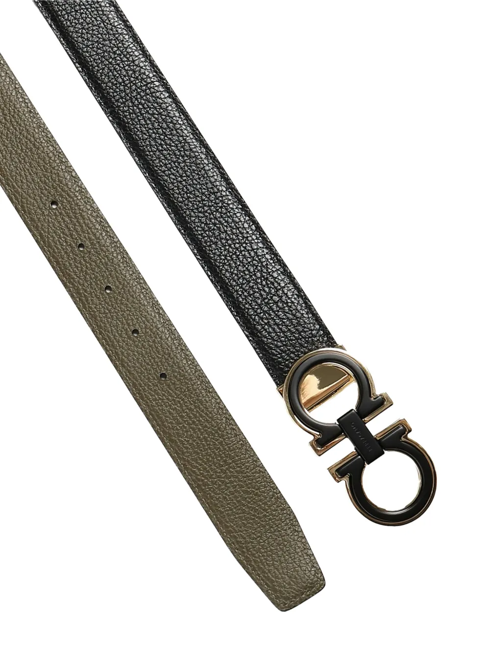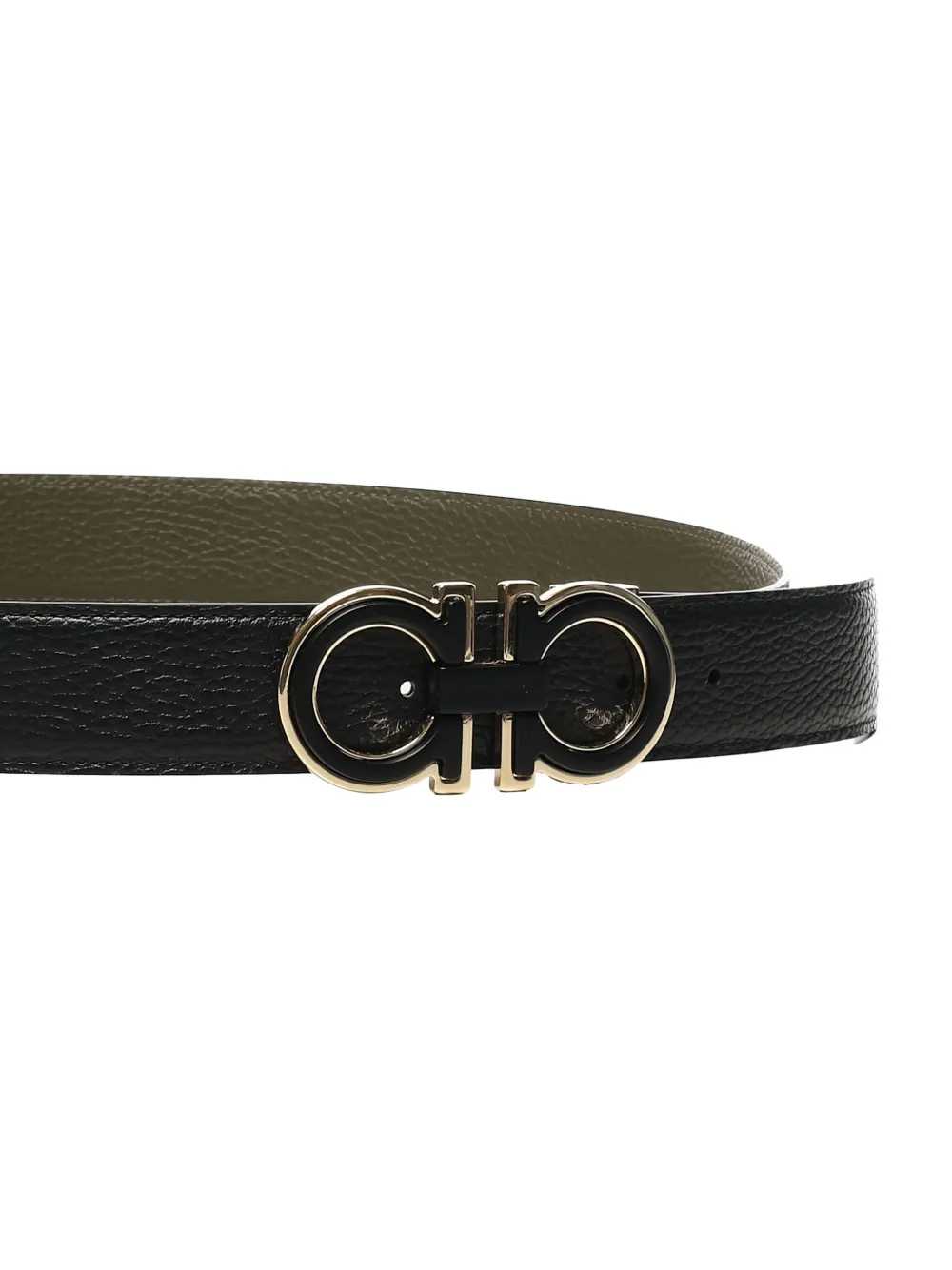 Пряжка Gancini из черной кожи, фурнитура золотистого оттенка, двусторонняя, текстурированная отделка