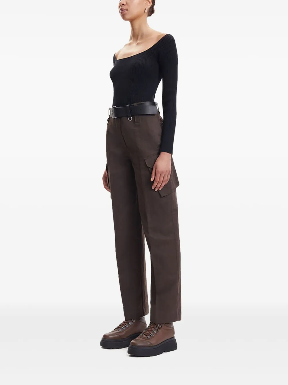 Черная ребристая фактура, круглый вырез, рукава три четверти, органический хлопок, смесь шелка