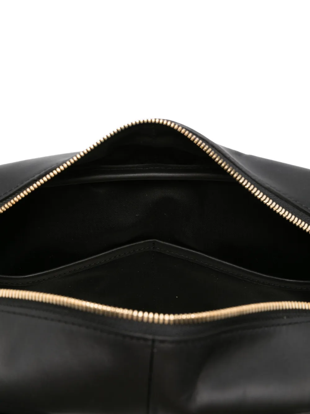 Черная хлопковая подкладка, двухсторонняя застежка-молния, текстурированные кожаные ручки, прямоугольная форма, внутренний накладной карман