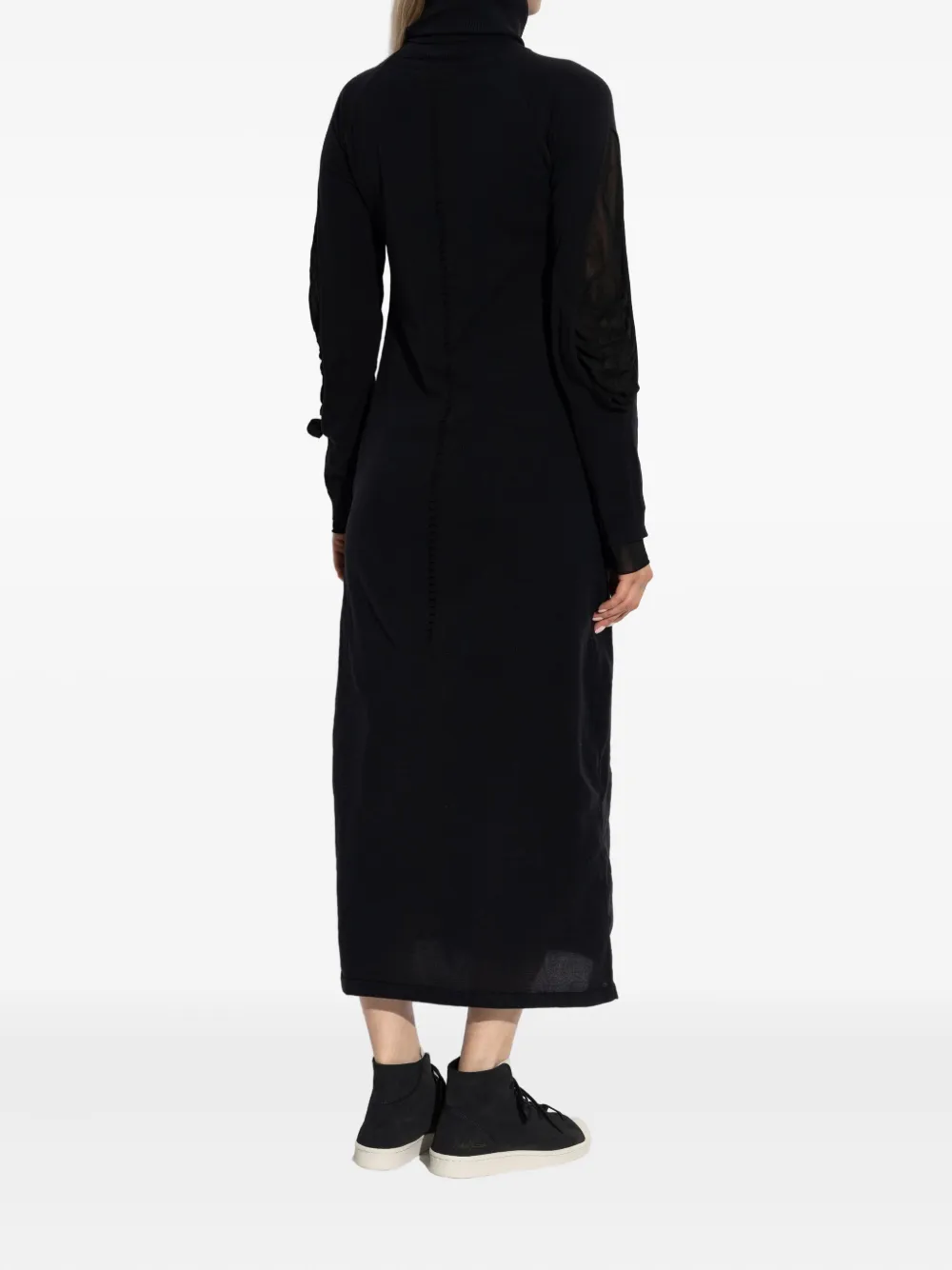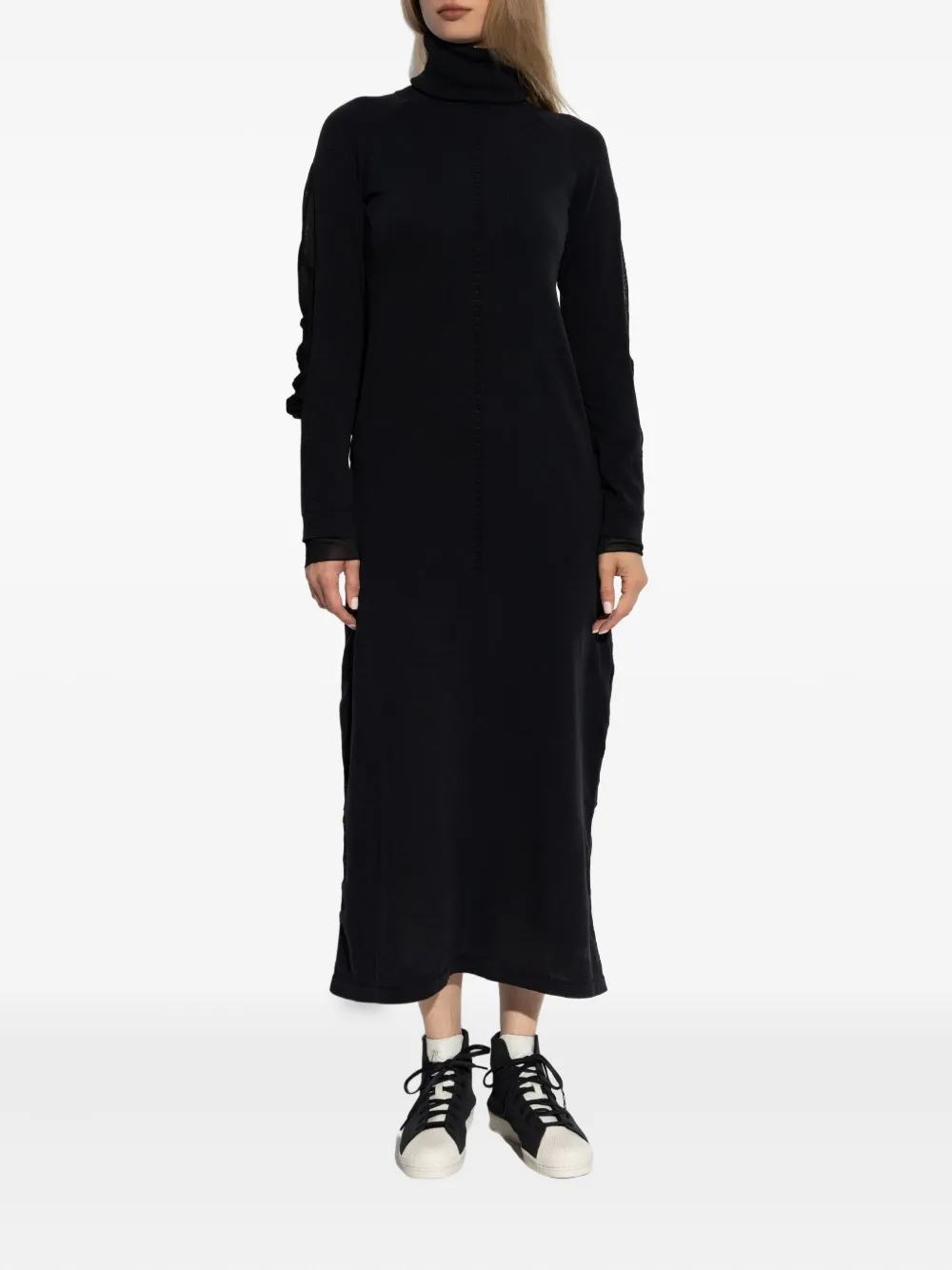 Платье с высоким воротником и сетчатыми вставками Y-3, черный