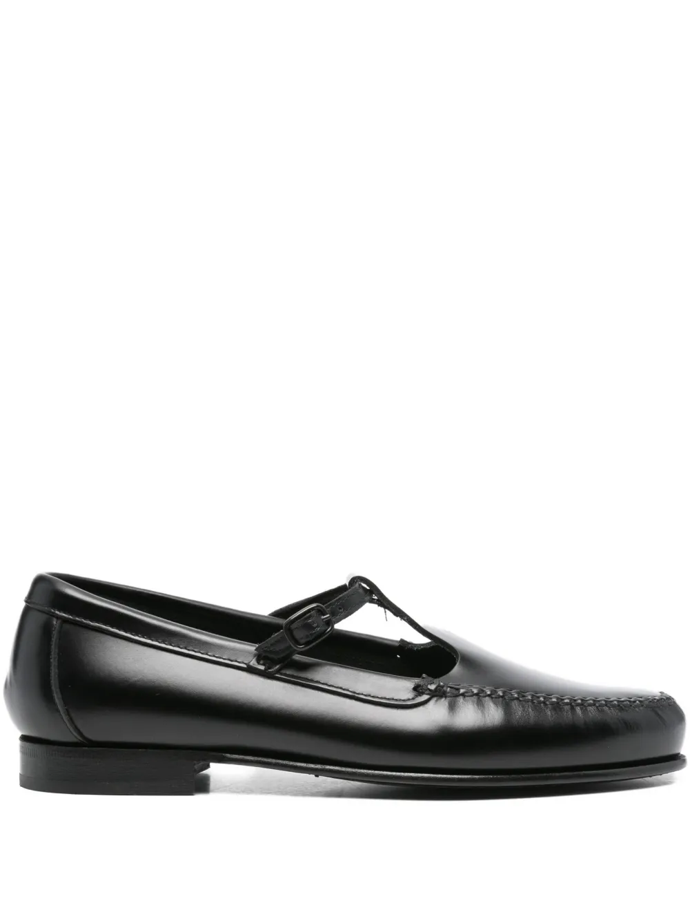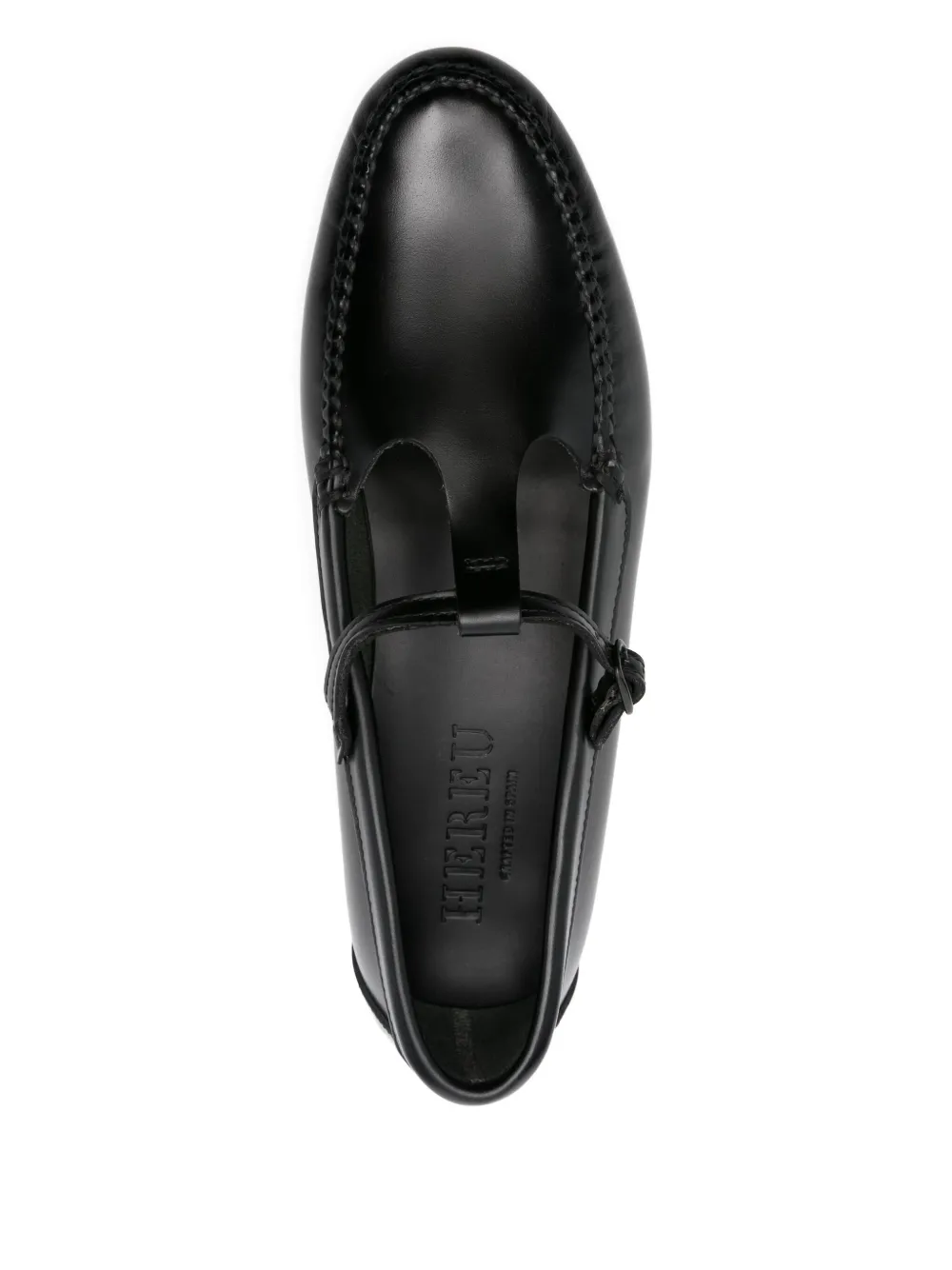 Черная телячья кожа, застежка на Т-образную пряжку, фирменная стелька