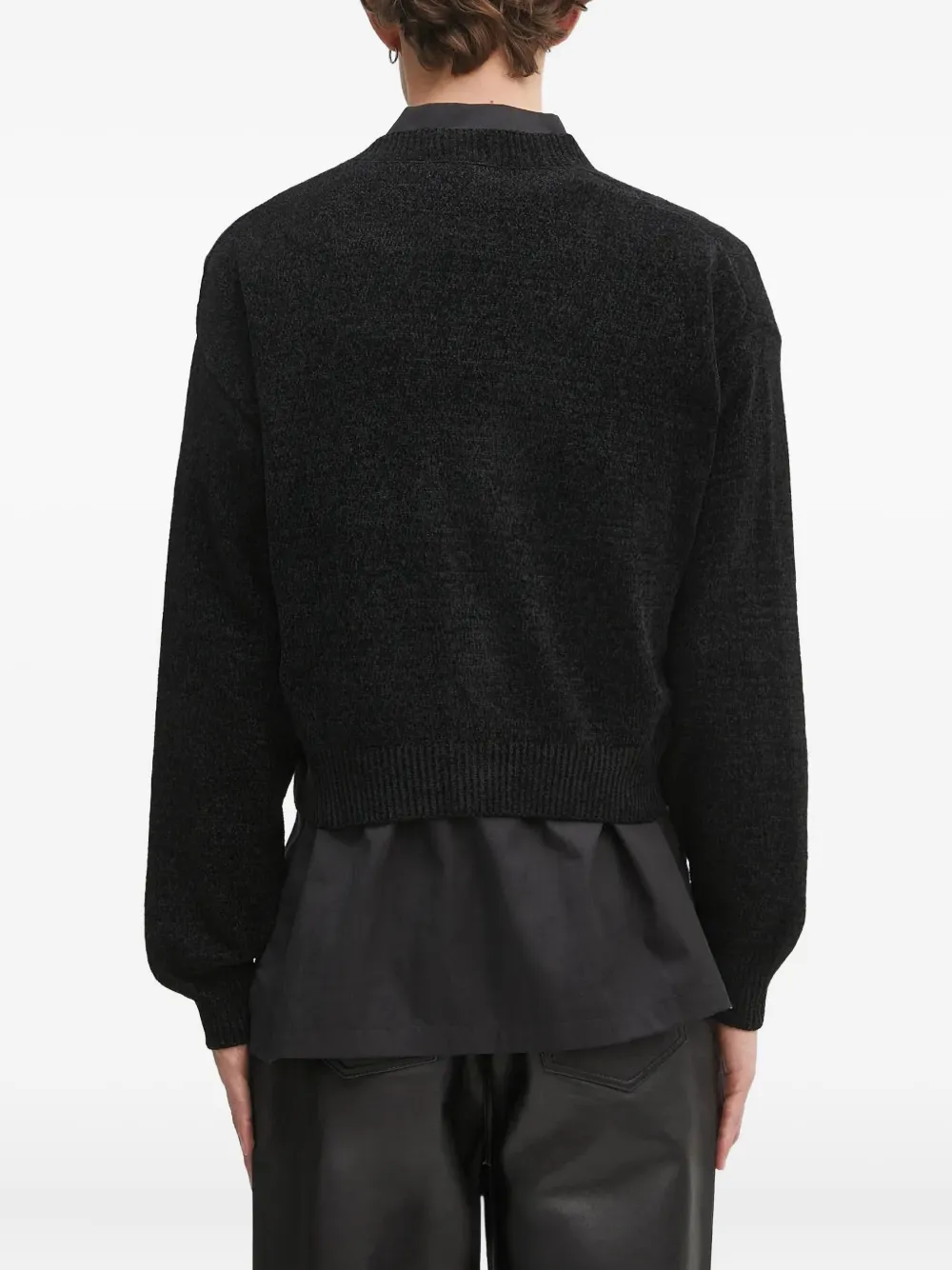 Черный V-образный вырез, застежка на пуговицы, длинные рукава, вышитый логотип, укороченный