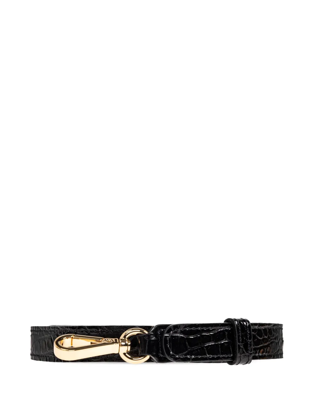 Черный кожаный ремешок с эффектом крокодила, съемный, изогнутый силуэт, застежка на застежке золотистого цвета