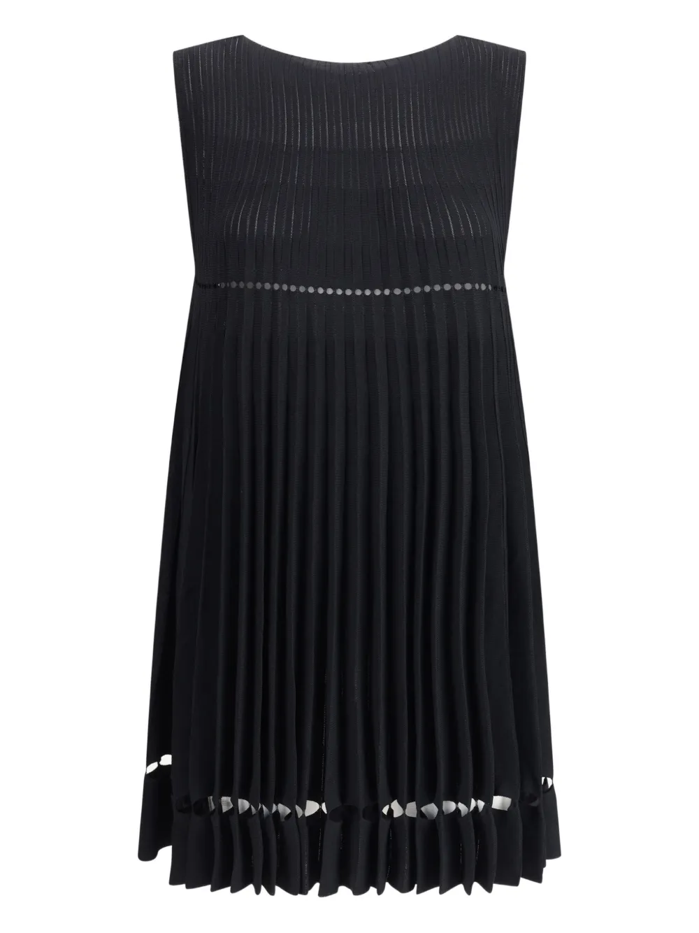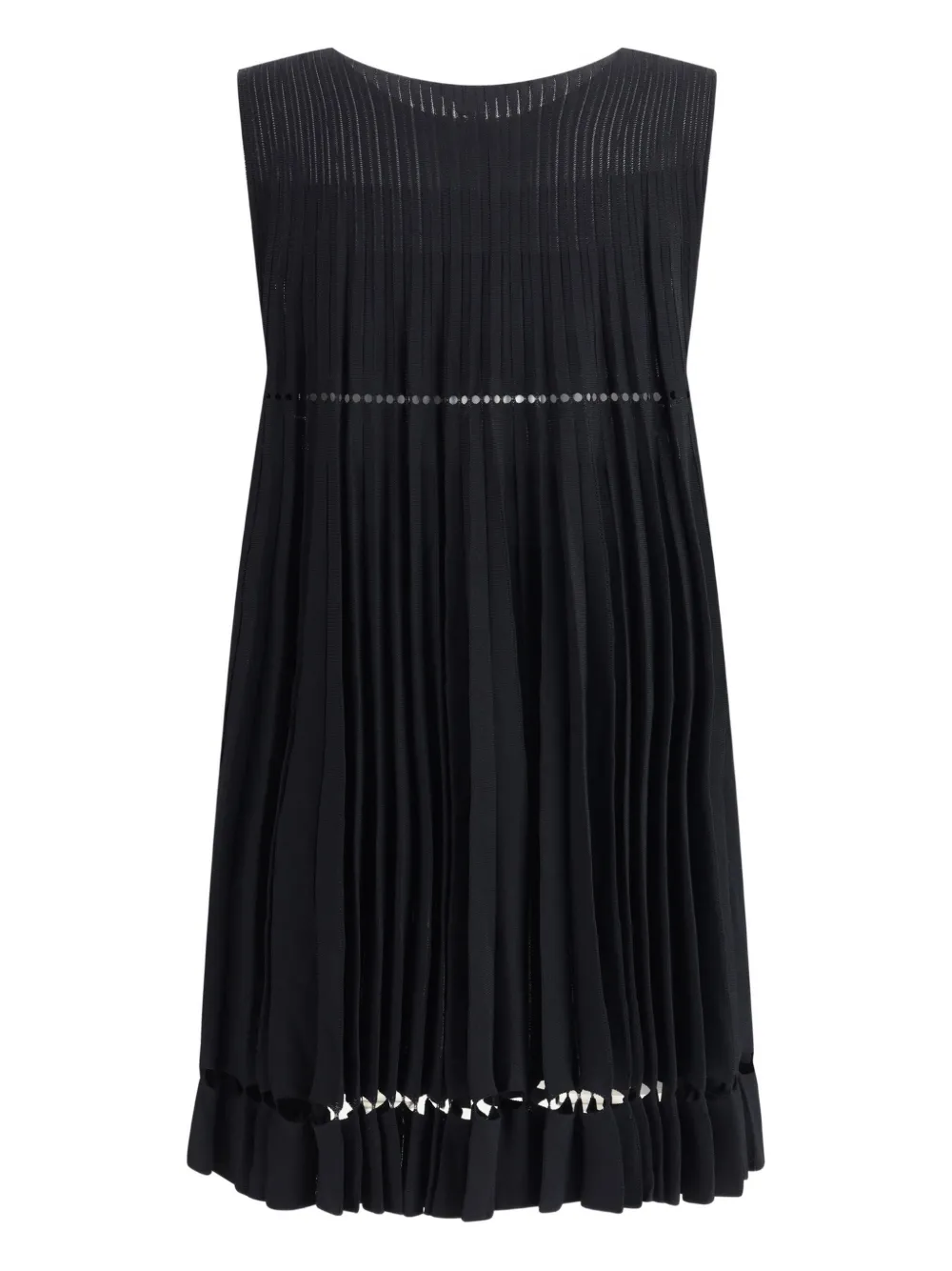 Черный плиссированный дизайн без рукавов круглый вырез ажурная отделка по подолу ажурная отделка