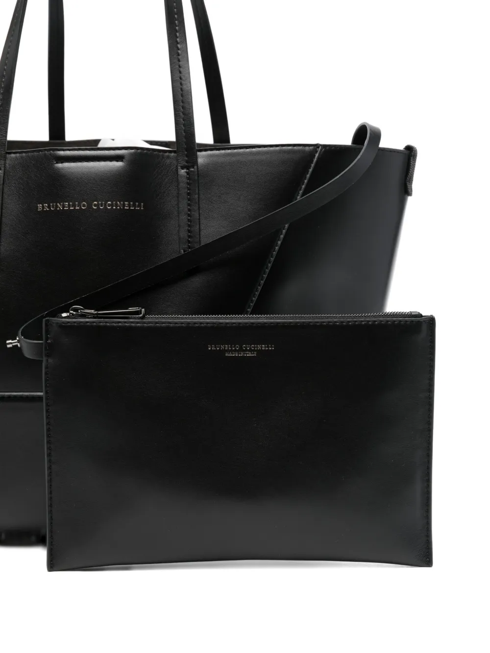Сумка-тоут из кожи с панелями Brunello Cucinelli, черный