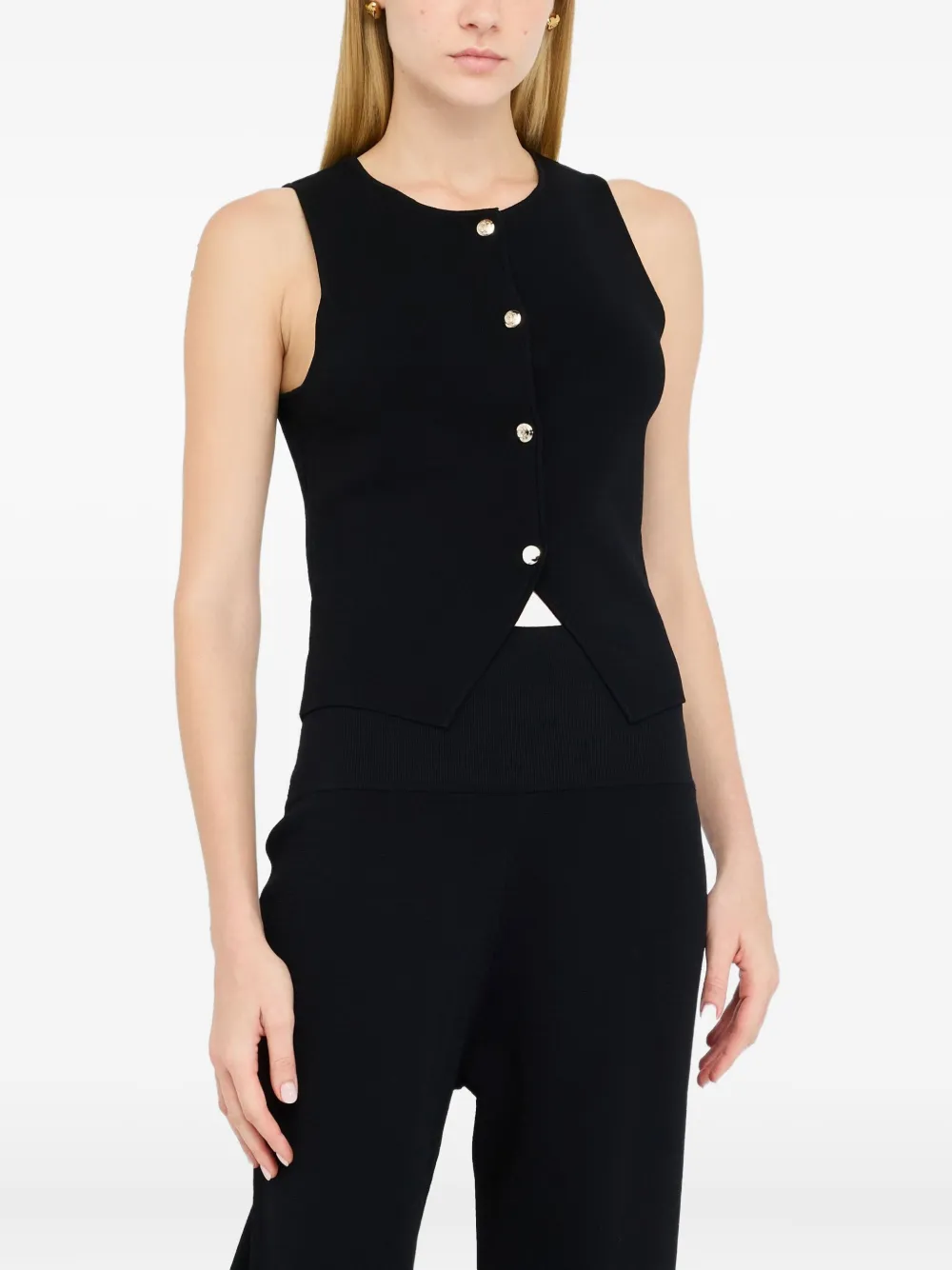 Черный круглый вырез без рукавов ребристая вязка застежка на кнопку