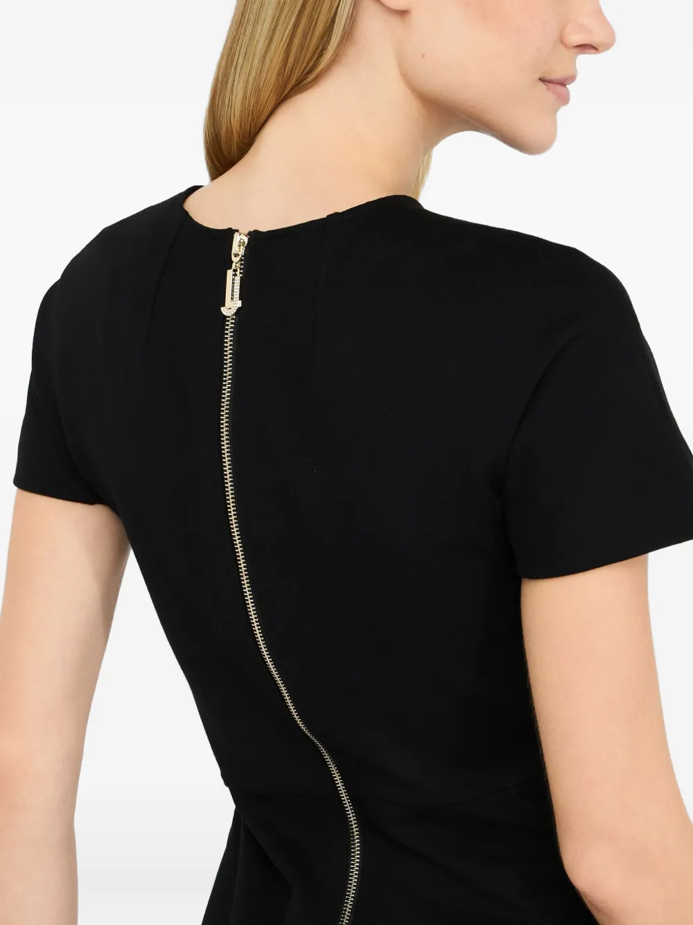 Черный круглый вырез горловины, короткие рукава, двухсторонняя застежка-молния