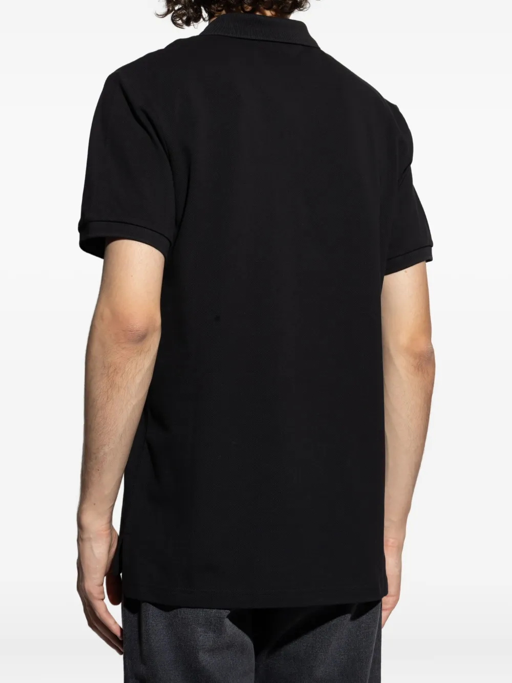 Черный короткий рукав, воротник-поло, застежка на пуговицы, вышитый логотип, хлопковый материал
