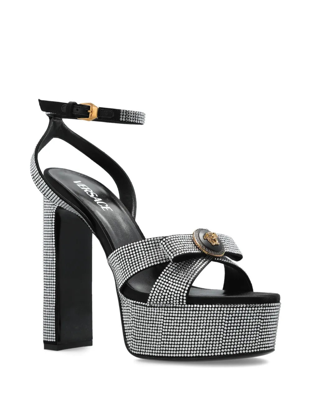 Босоножки на платформе с кристаллами VERSACE, черный
