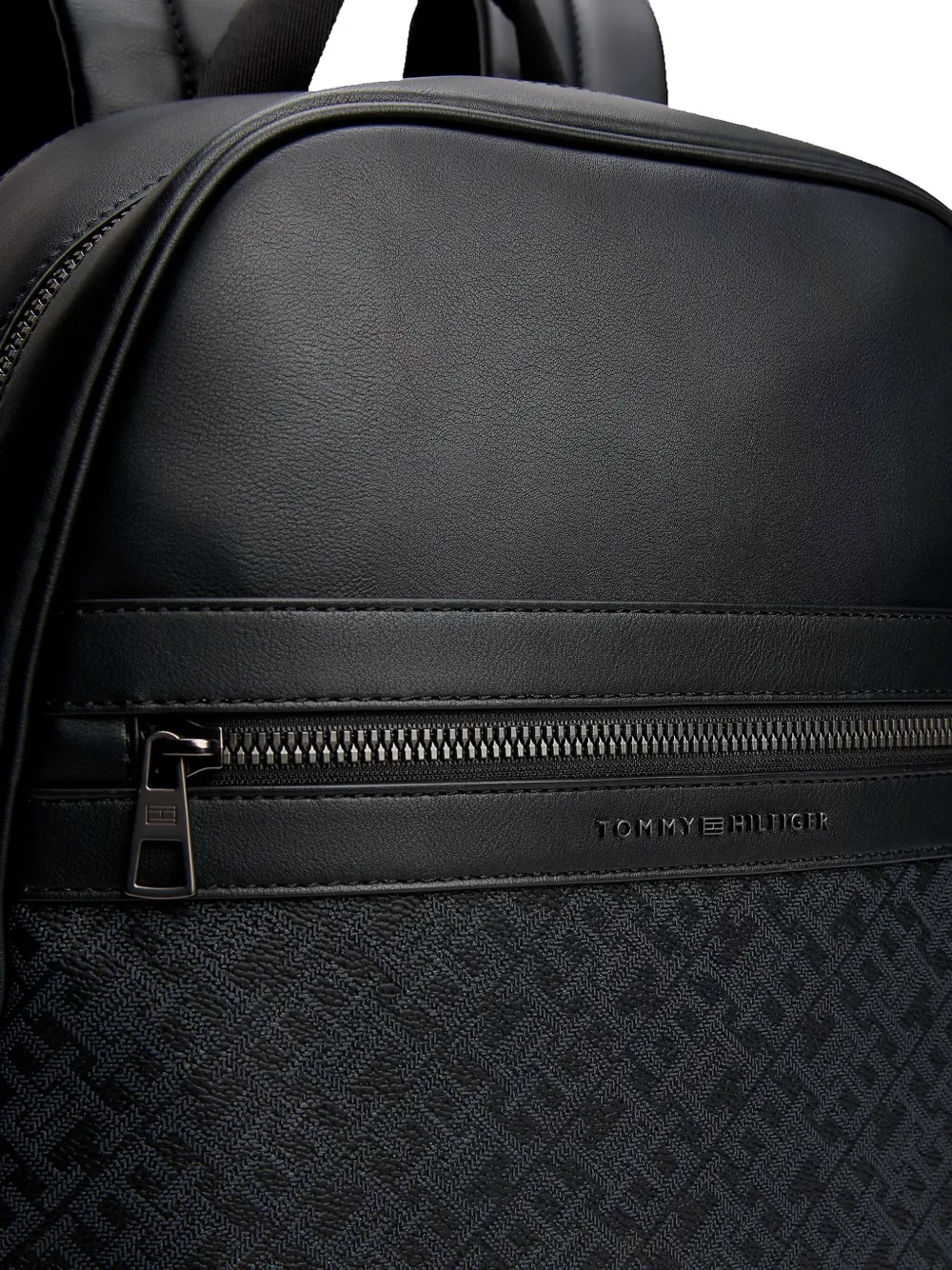 Застежка-молния с эффектом черной кожи, верхняя ручка, панель с узором в виде монограммы, регулируемые плечевые ремни
