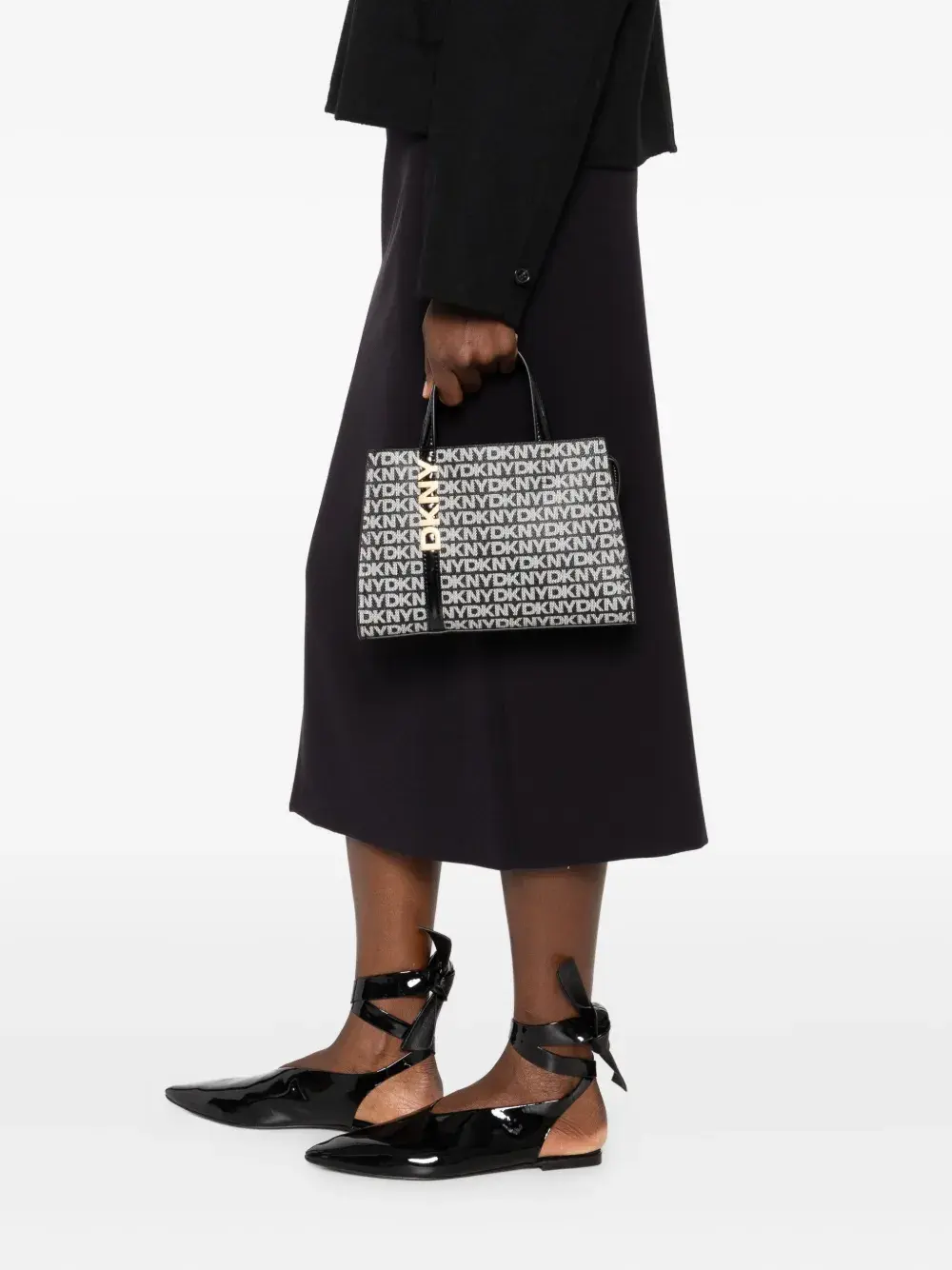 Сумка-тоут с монограммой и логотипом DKNY, черный