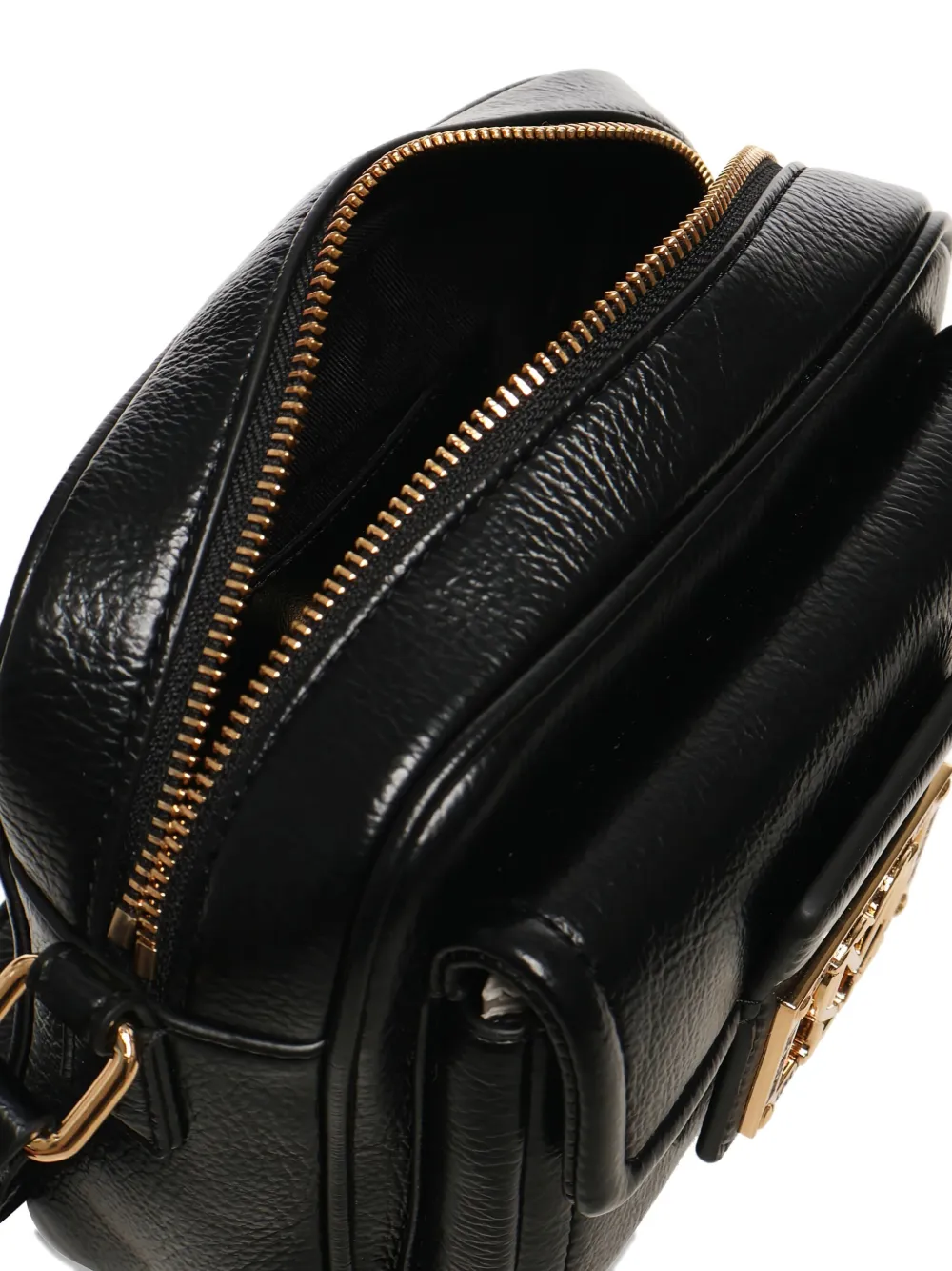 Черная золотистая пластинка с логотипом, застежка-молния, карман с клапаном, регулируемый плечевой ремень, искусственная кожа