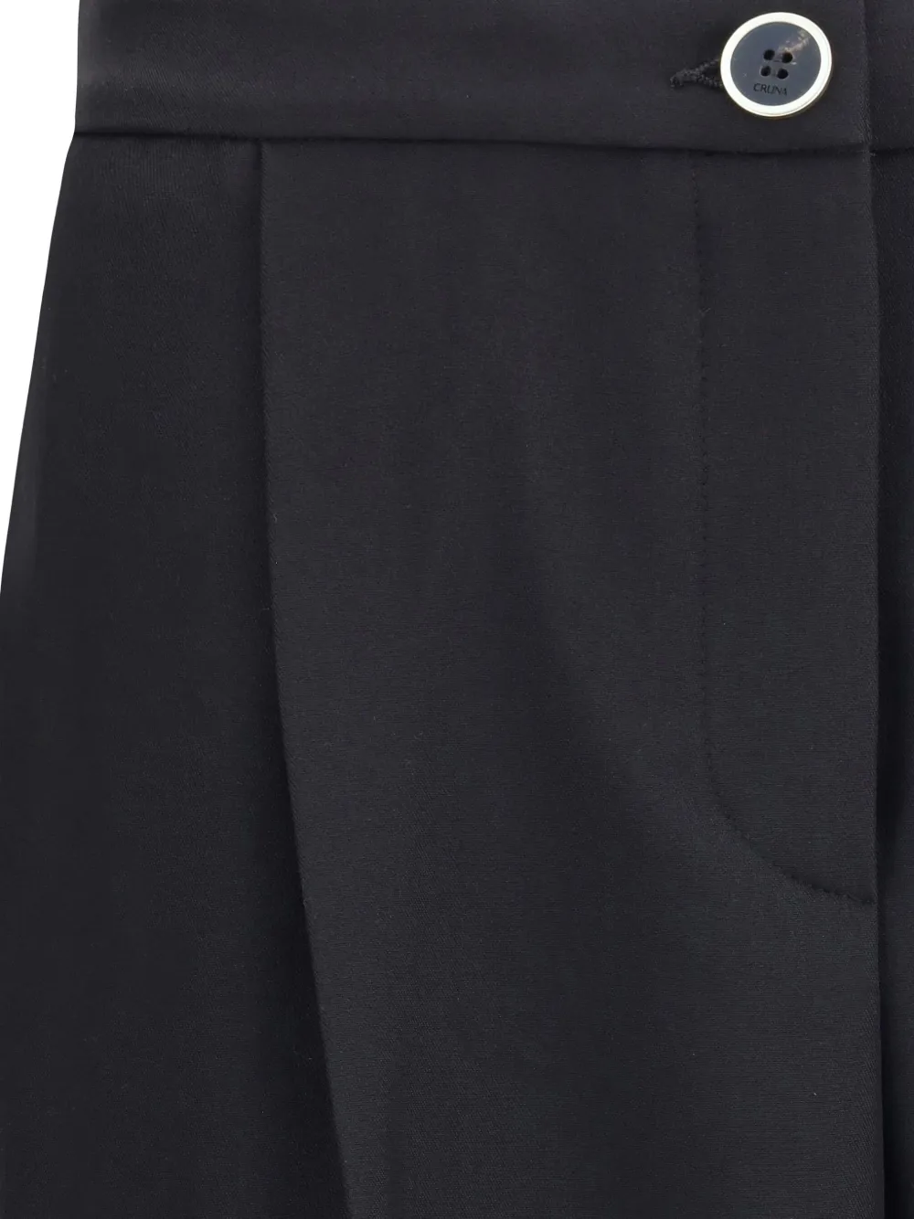 Черные плиссированные брюки с пуговицами спереди, прорезные карманы по бокам, прямой крой