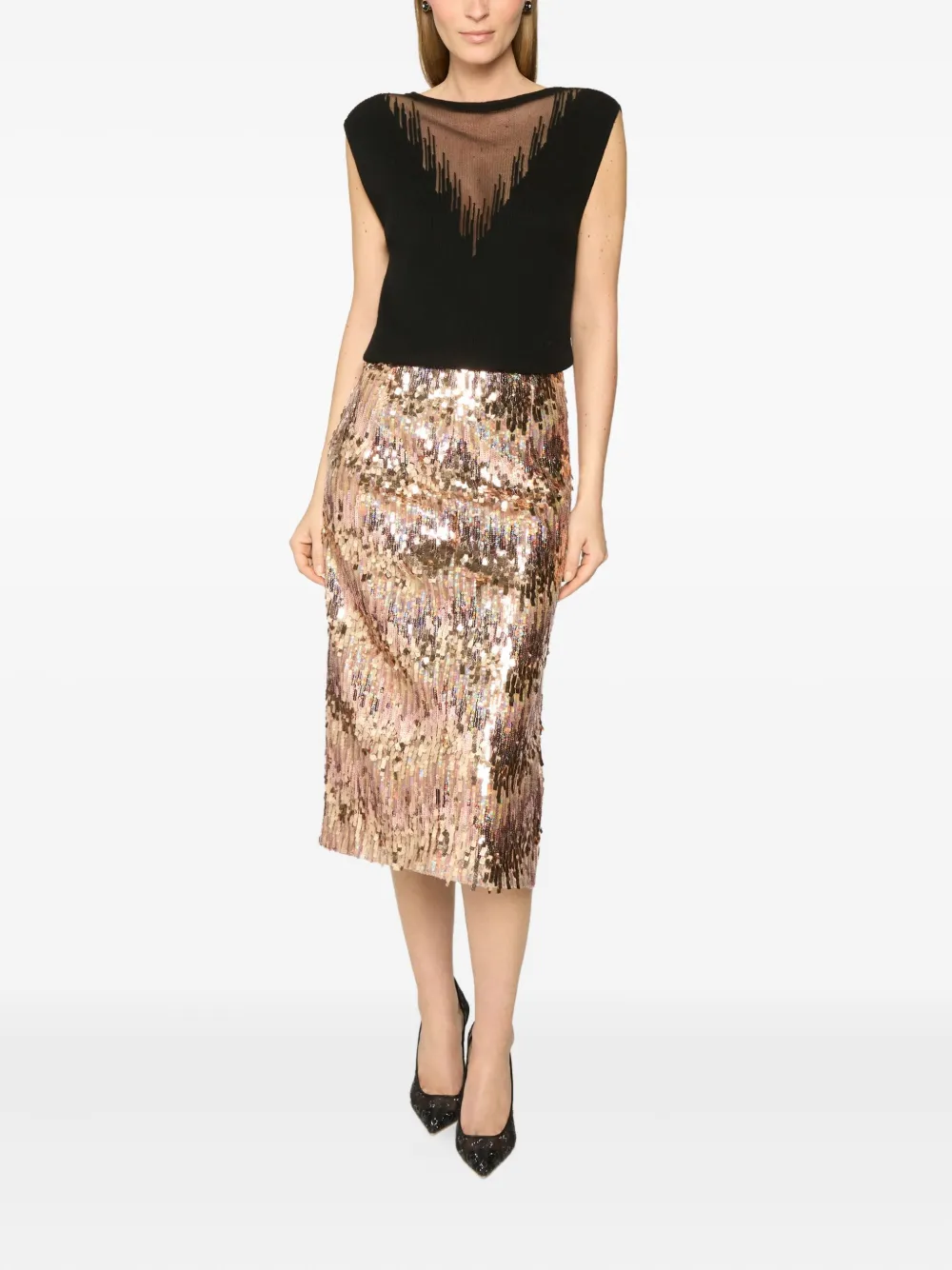 Топ в рубчик с прозрачной вставкой Genny, черный 35 217₽