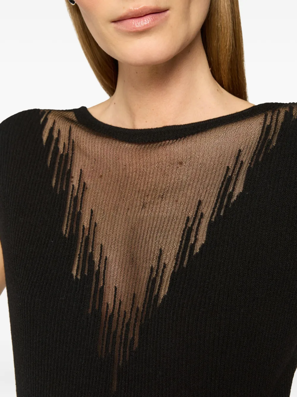 Топ в рубчик с прозрачной вставкой Genny, черный
