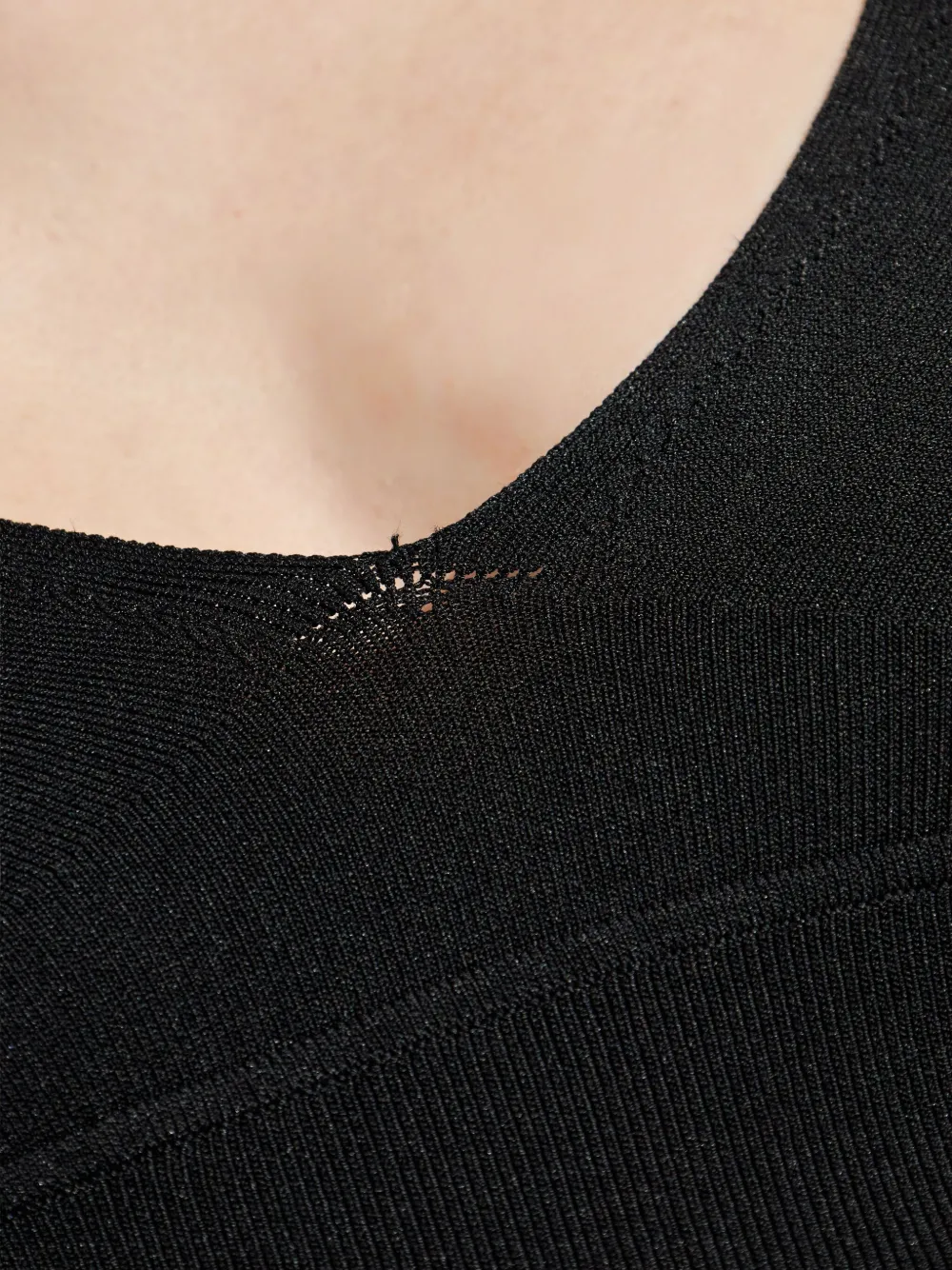Черный V-образный вырез, ребристая вязка, тонкие бретельки, прямой подол