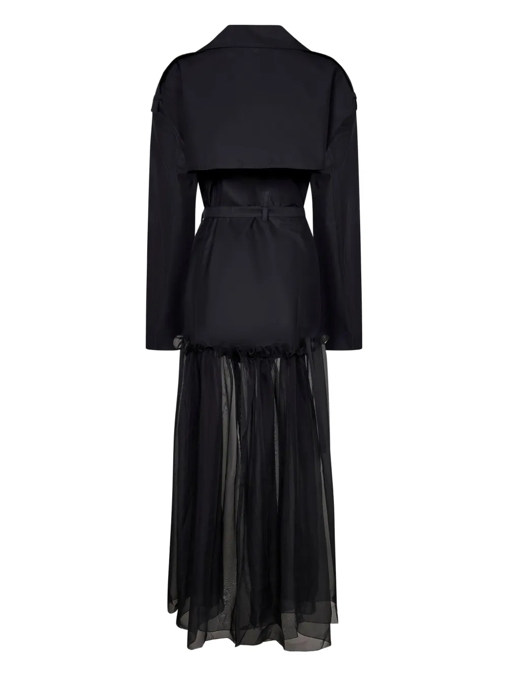 Черный двубортный жакет с застежкой на пуговицы, регулируемый пояс, шлевки для ремня, прозрачная вставка, длинные рукава