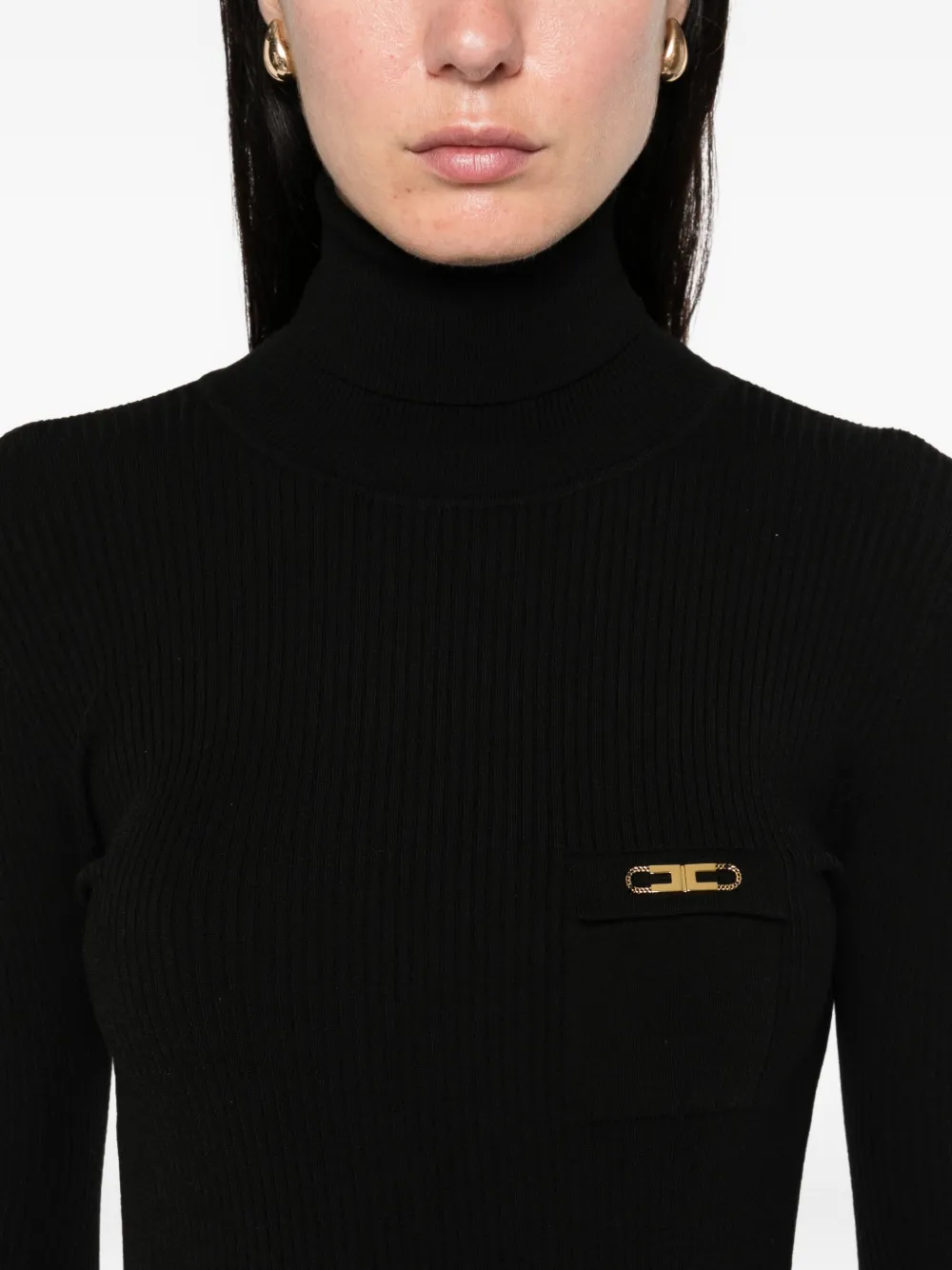 Платье в рубчик с высоким воротником Elisabetta Franchi, черный