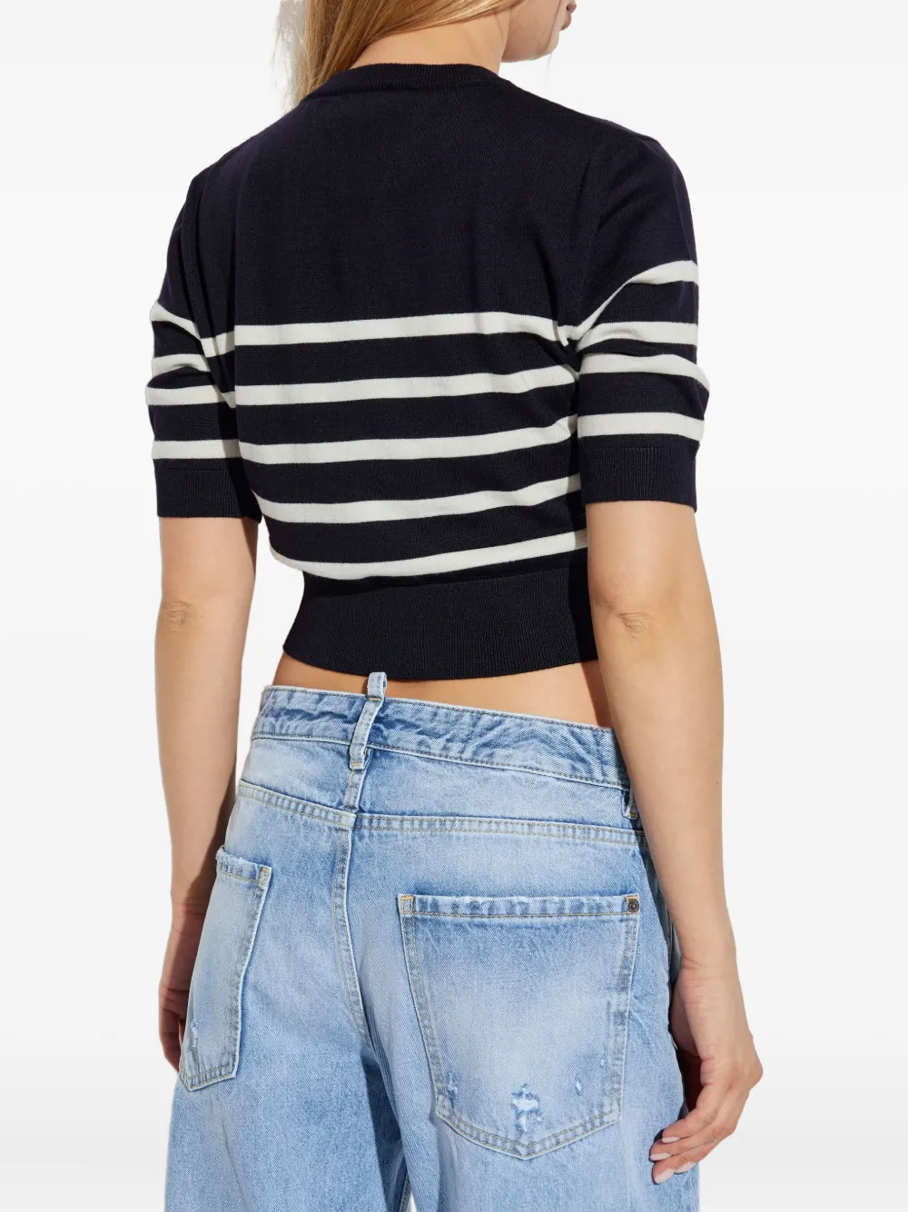 Детали с темно-синими полосками, короткие рукава, круглый вырез, укороченная длина, вышитый логотип