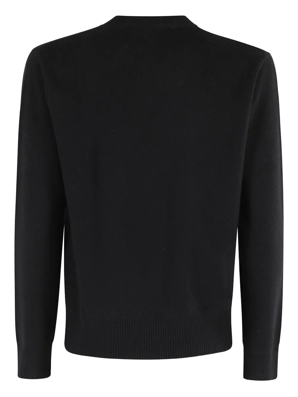 Черный круглый вырез, ребристый подол, длинные рукава, ребристые манжеты, прямой подол