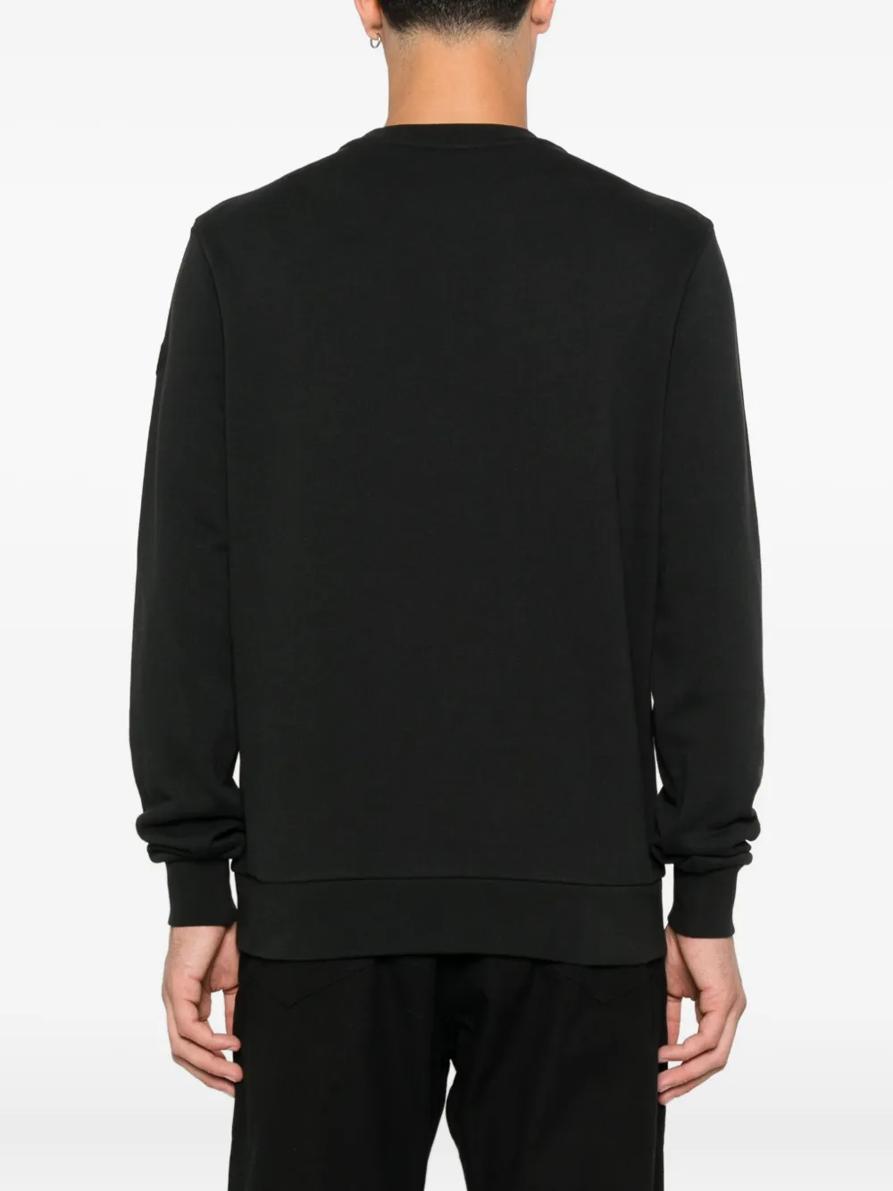 Черный хлопковый джемпер с круглым вырезом, длинными рукавами, вышитым логотипом, ребристыми манжетами и подолом