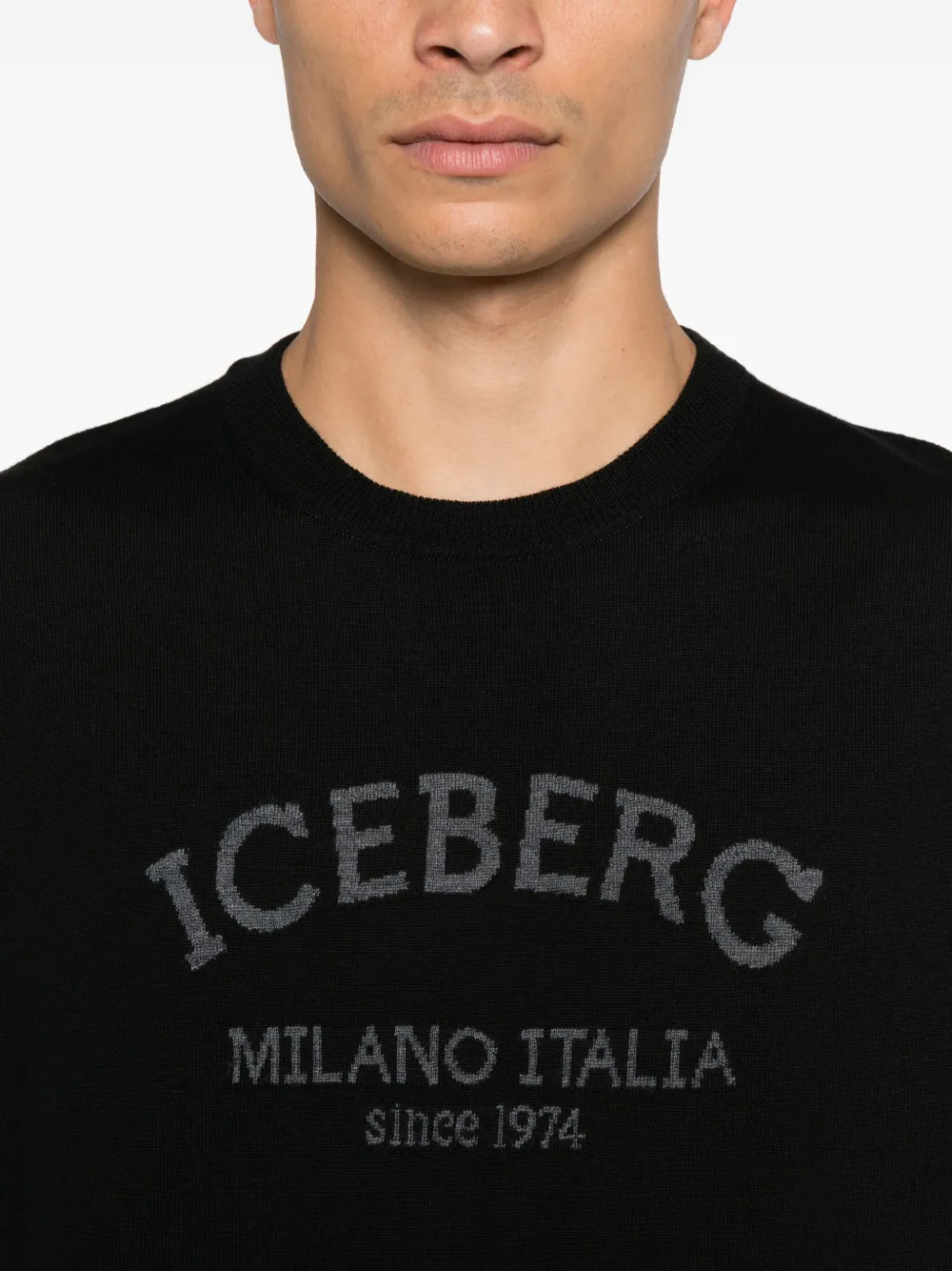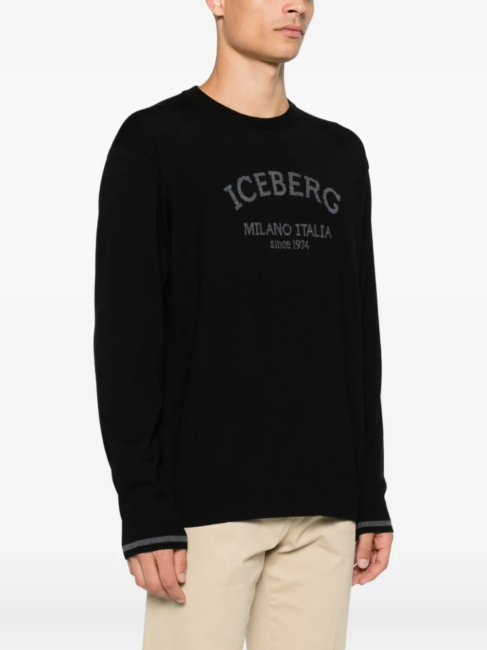 Шерстяной свитер с вышитым логотипом Iceberg, черный