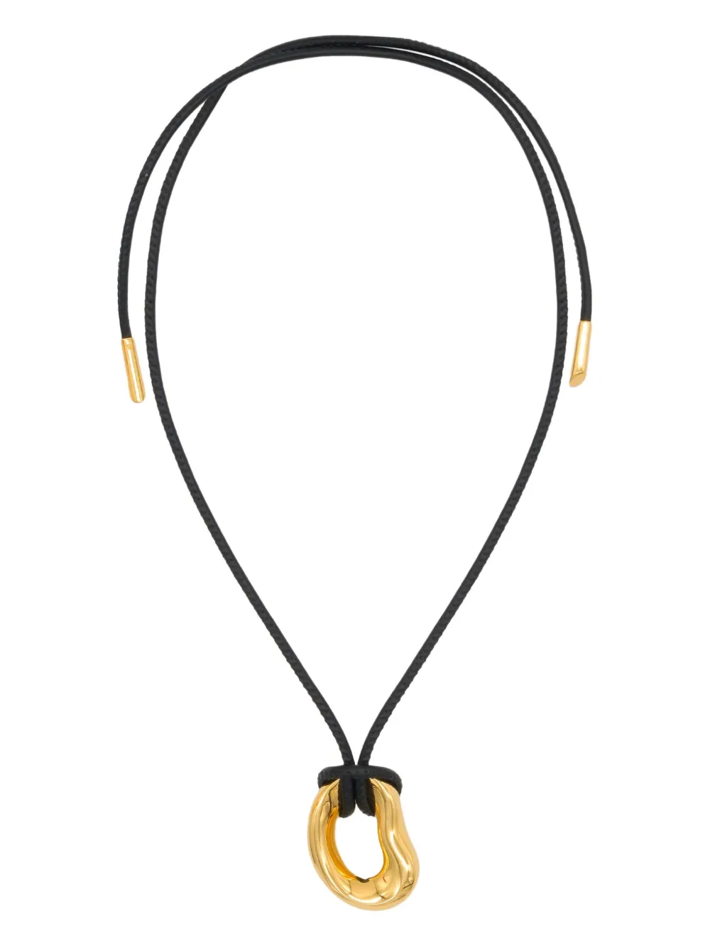 Подробнее о товаре: • золотистый • позолоченная подвеска • абстрактная подвеска • регулируемый черный шнур • позолоченные наконечники шнурка • застежка на скользящий узел • Повседневное использование и воздействие внешних факторов могут уменьшить блеск драгоценных камней и поверхностей, покрытых золотом. Для ухода используйте специальные неабразивные средства, предназначенные для чистки ювелирных изделий.