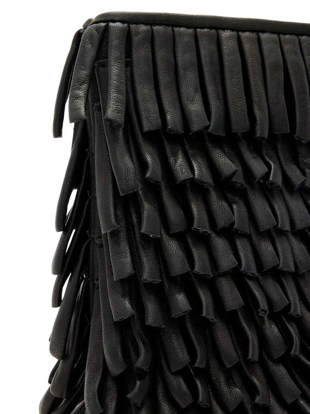 Черная кожаная бахрома с многослойной бахромой, застежка-молния