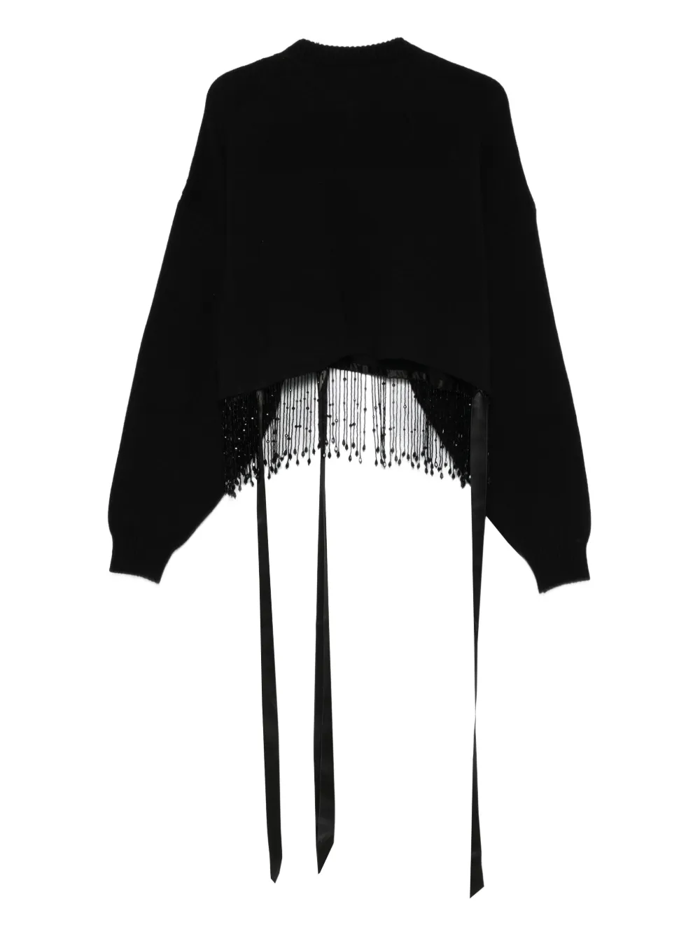 Свитер с бахромой из бисера и лентами Alberta Ferretti, черный