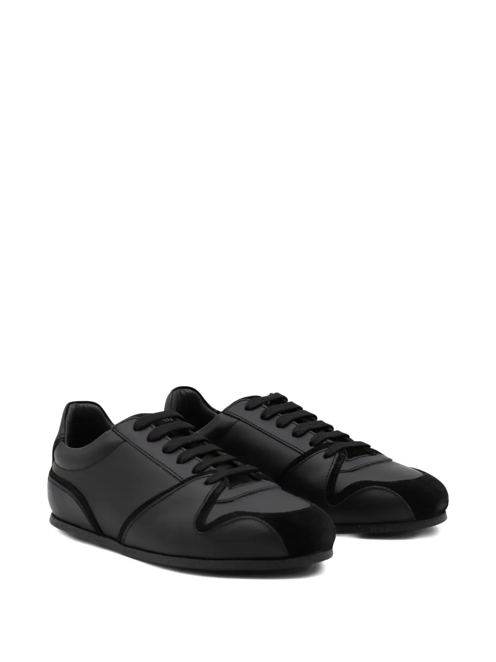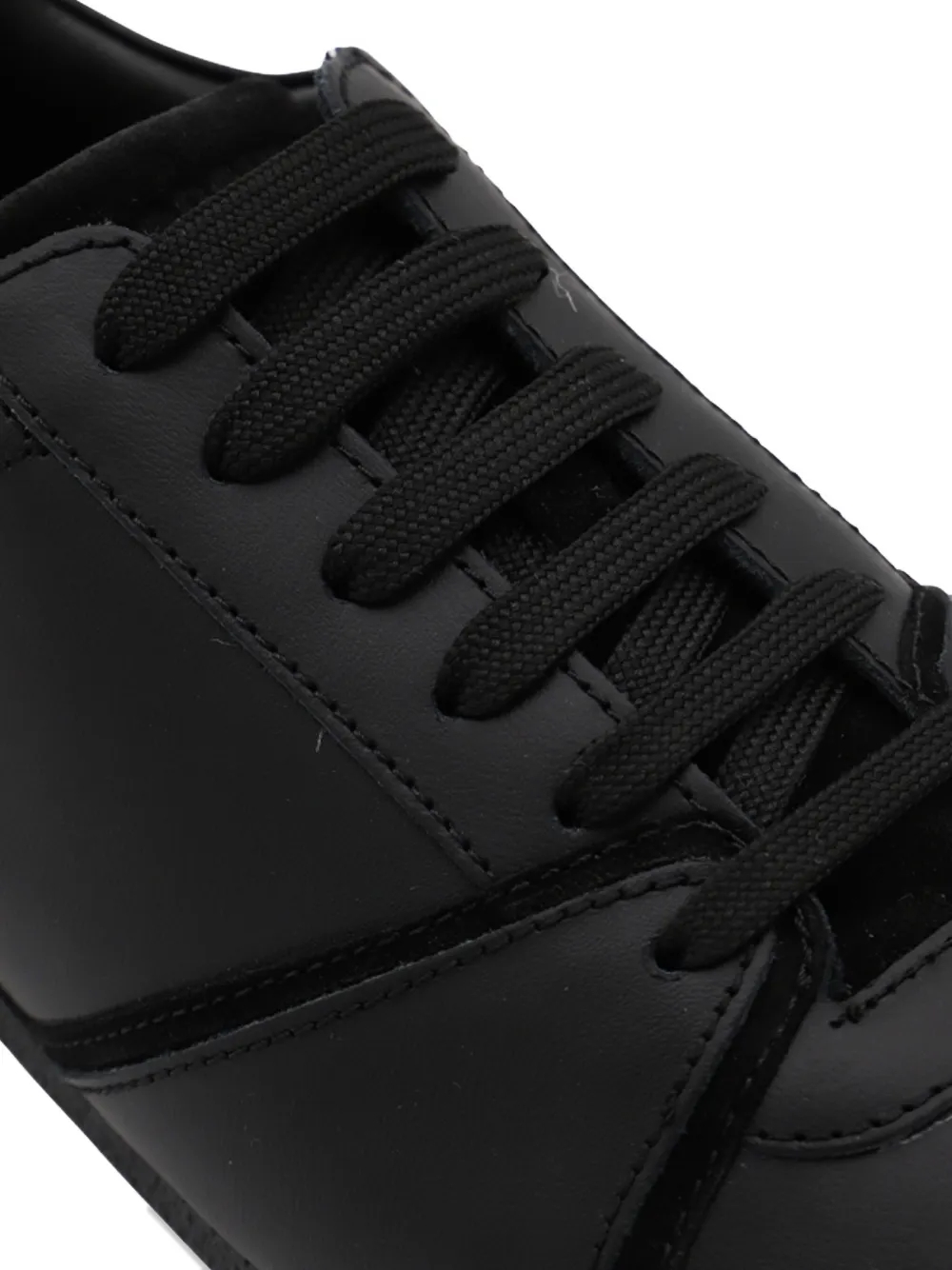 Верх из черной кожи, замшевая вставка, шнуровка, плоская подошва, круглый носок