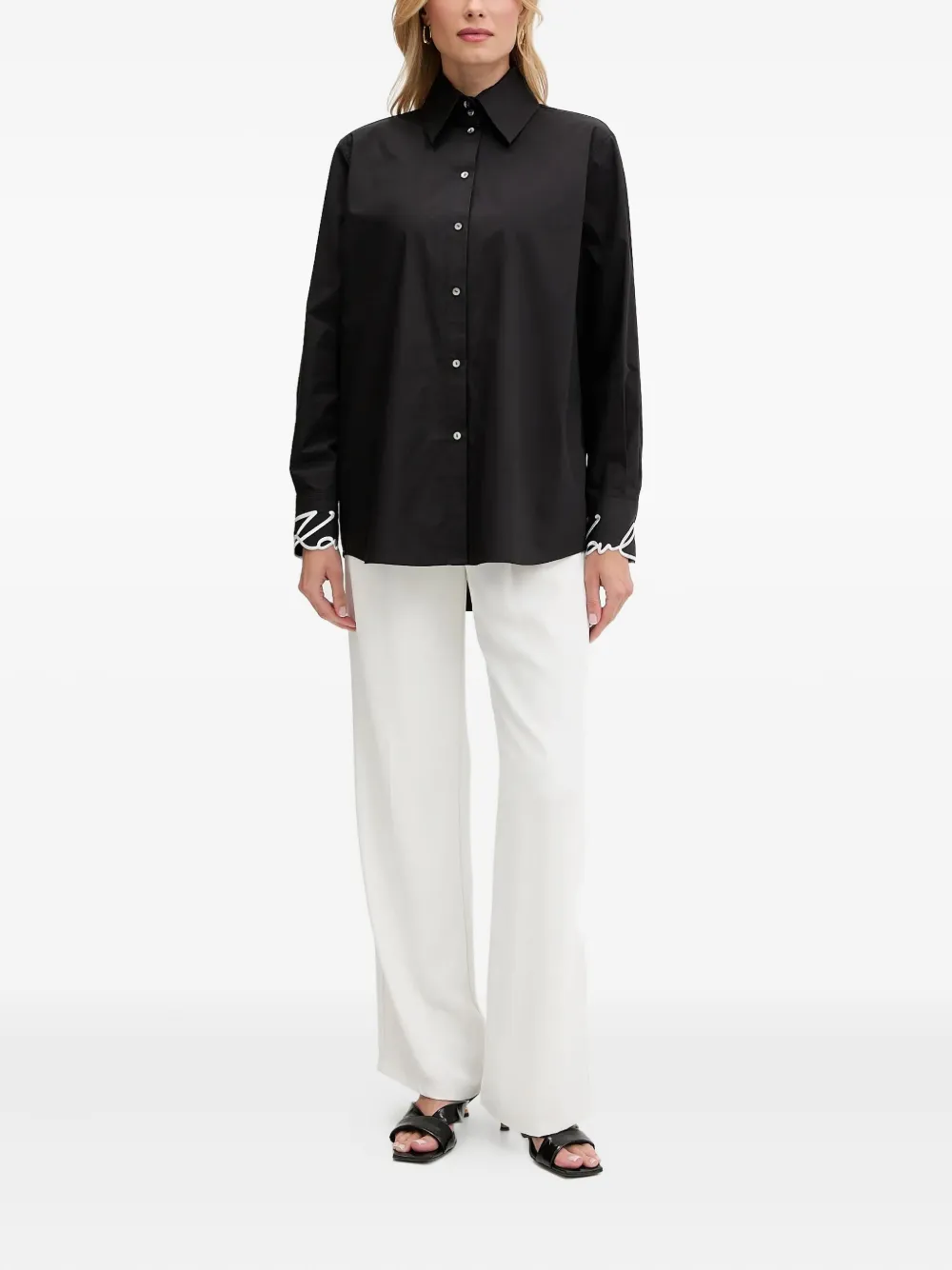 Рубашка с вышитыми манжетами KARL LAGERFELD, черный